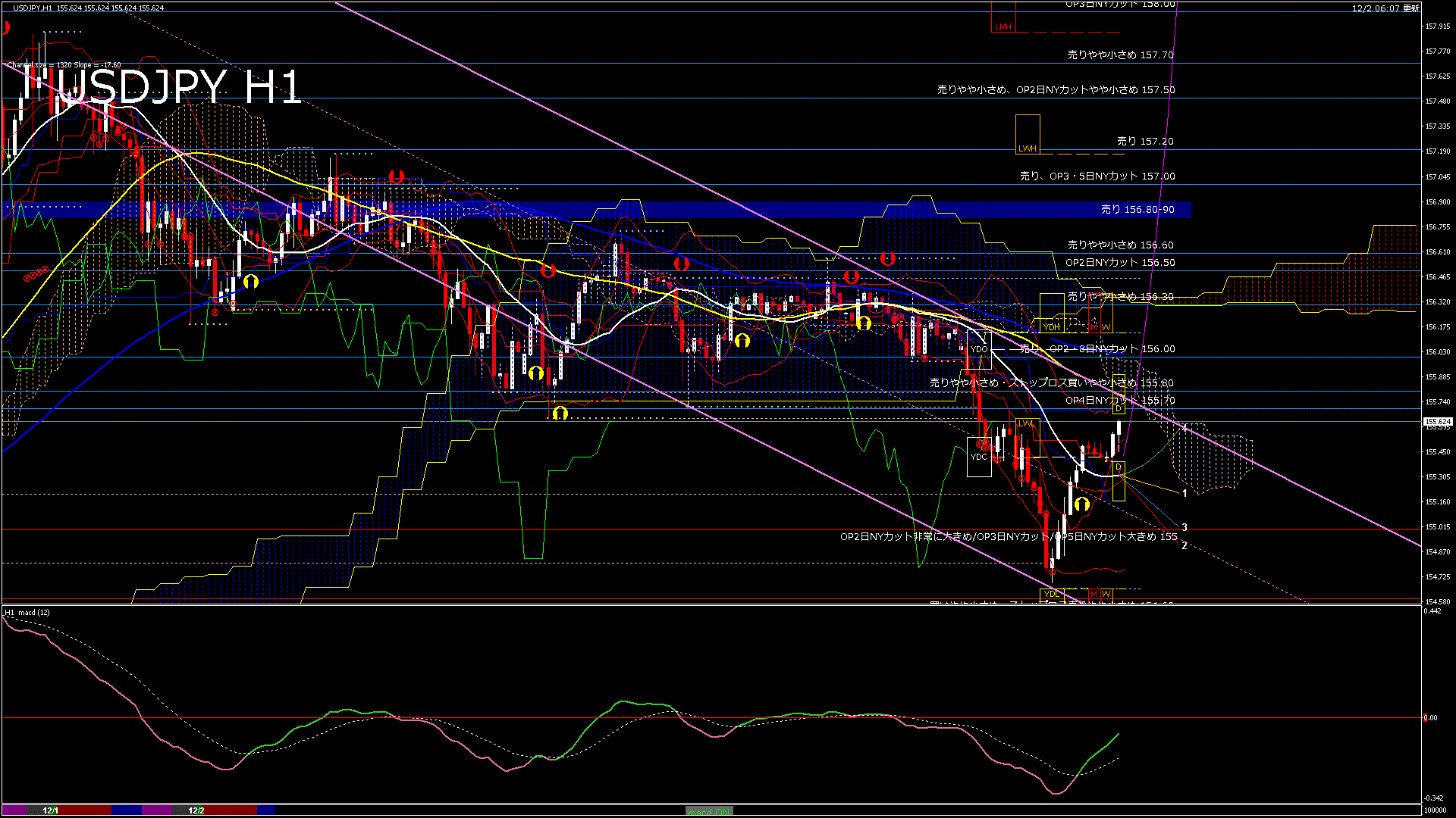USDJPY-H1移動平均線と現在値(RSI)-2025.12.2 9:00:00