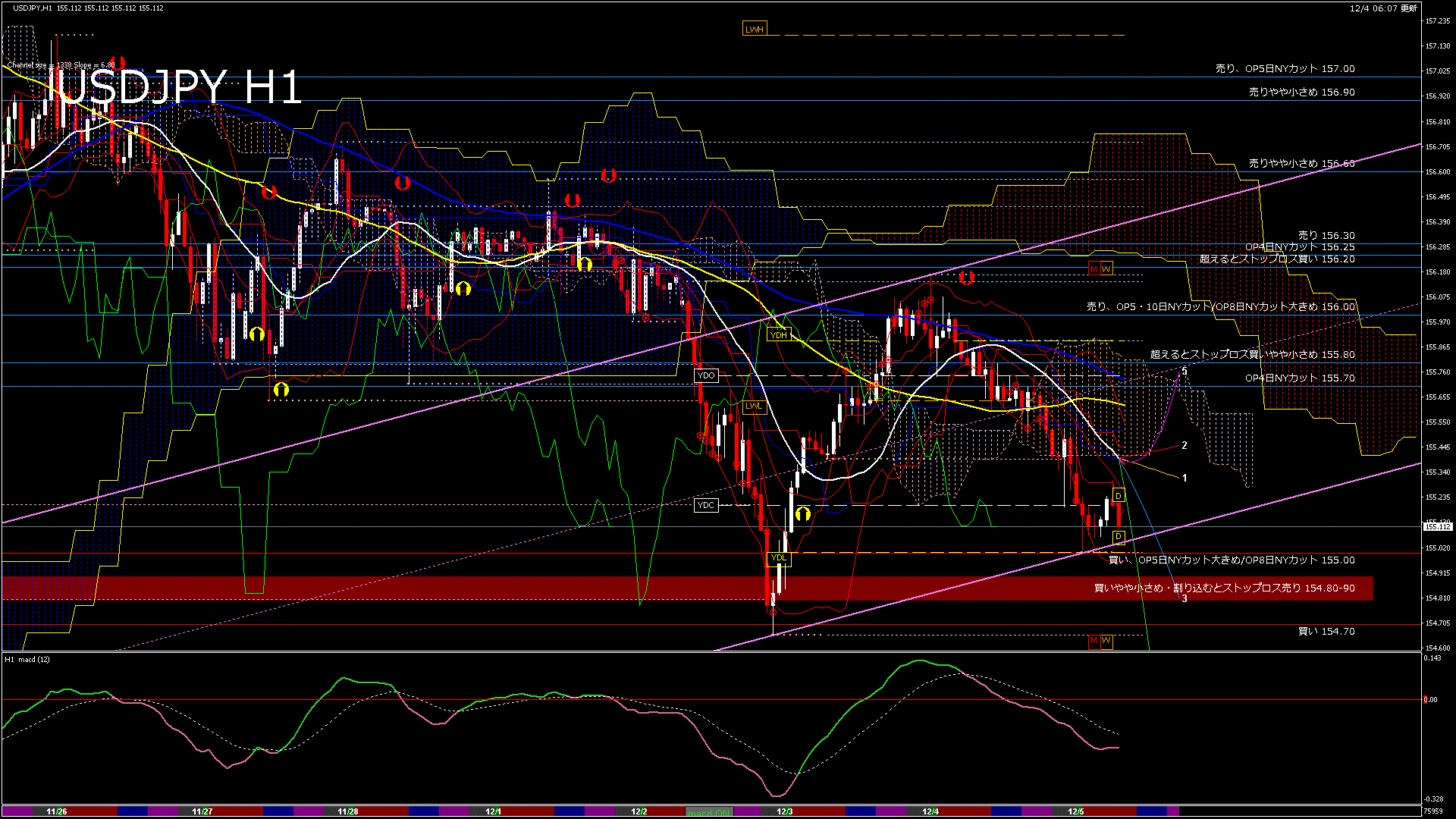 USDJPY-H4移動平均線と現在値(RSI)-2025.12.4 7:00:06