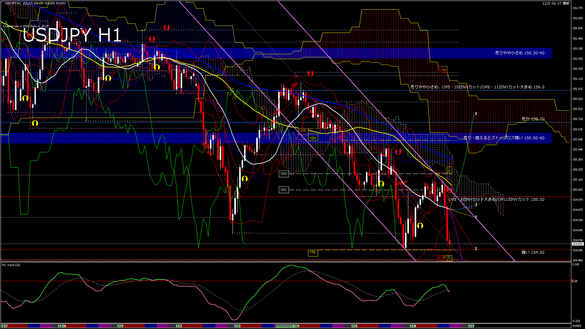 USDJPY-H1移動平均線と現在値(RSI)-2025.12.5 16:00:00