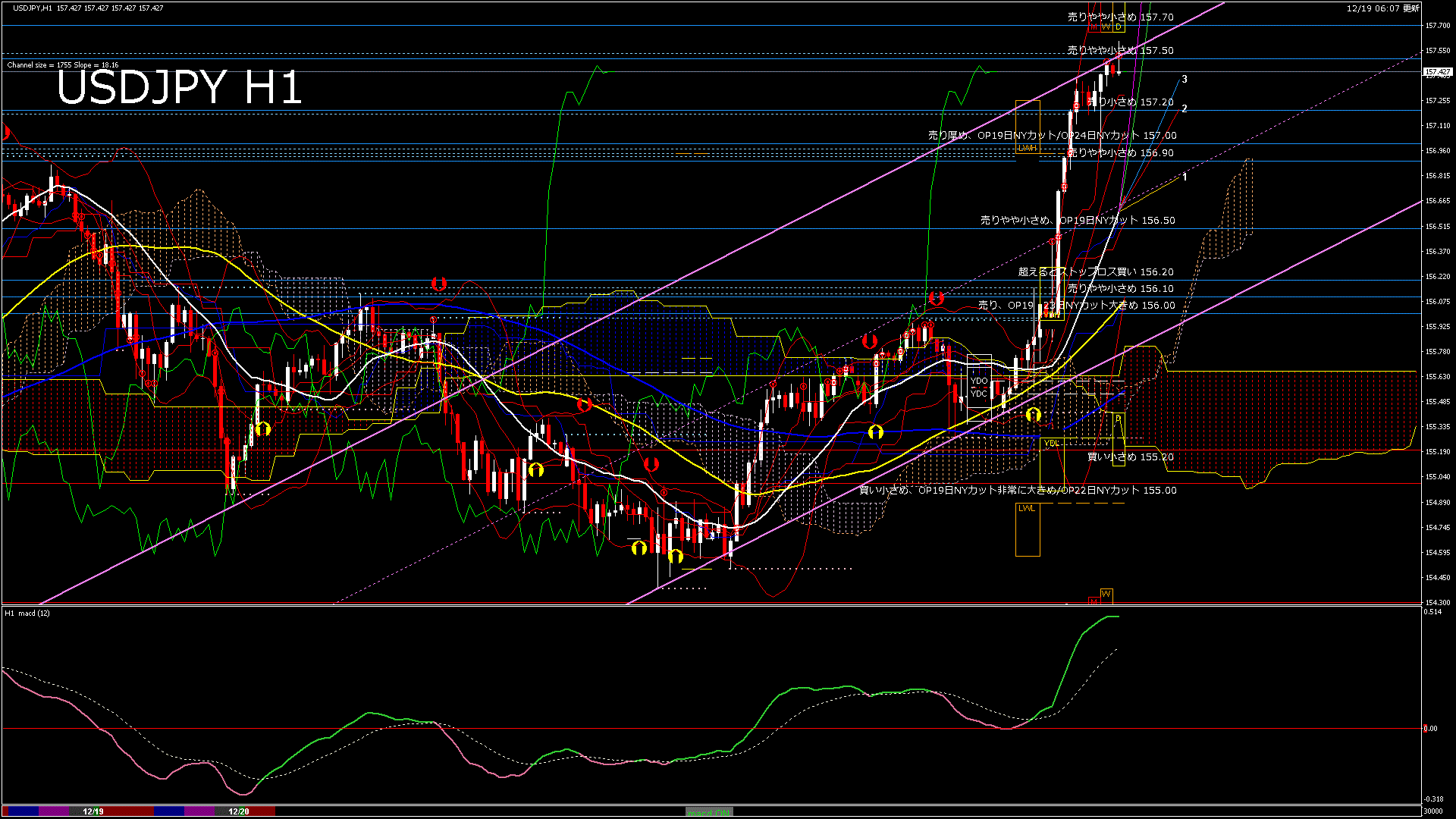 USDJPY-H1移動平均線と現在値(RSI)-2025.12.20 2:00:00