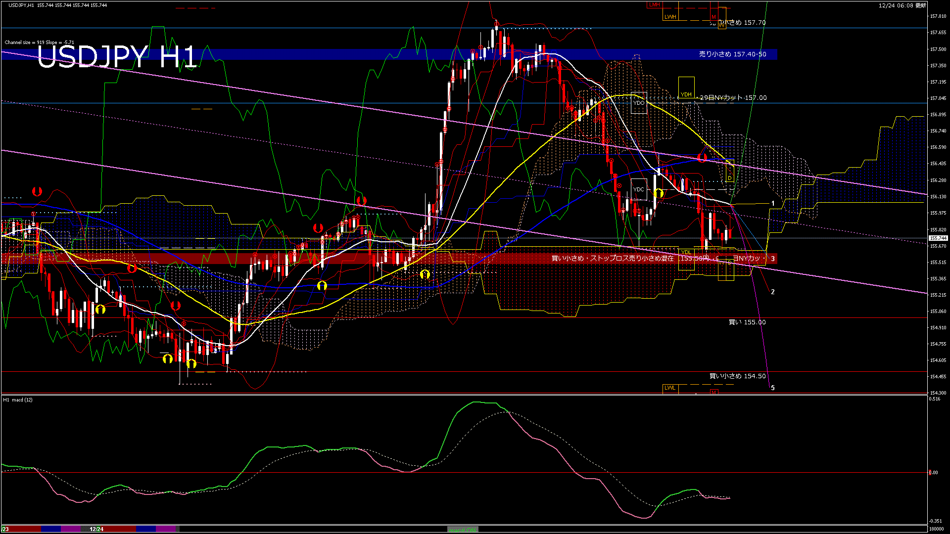 USDJPY-H1移動平均線と現在値(RSI)-2025.12.24 18:00:00