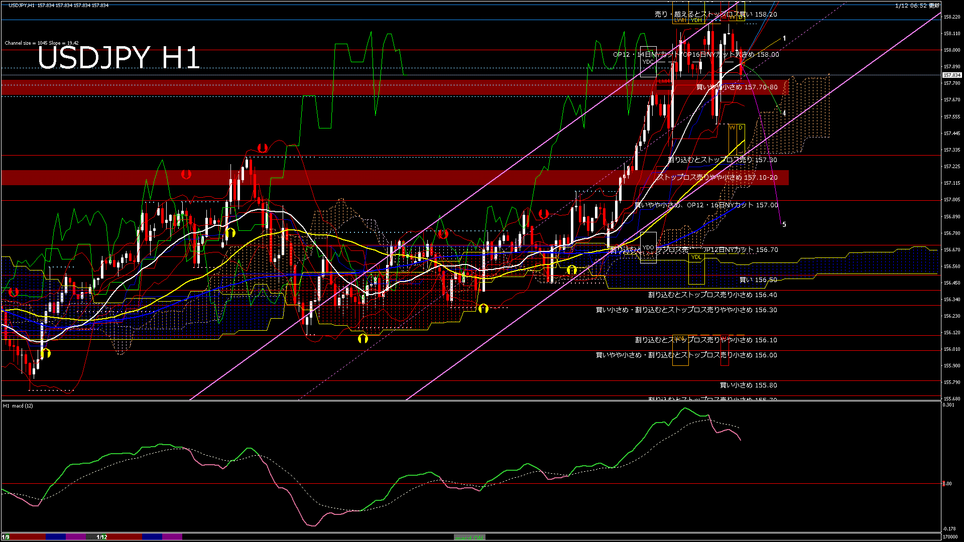 USDJPY-H1移動平均線と現在値(RSI)-2026.1.12 17:00:00