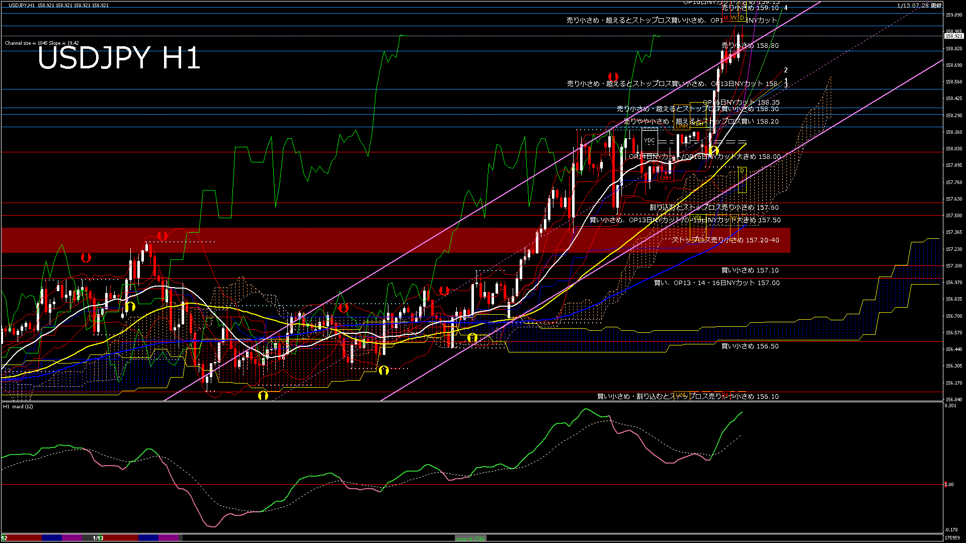 USDJPY-H1移動平均線と現在値(RSI)-2026.1.13 17:00:00