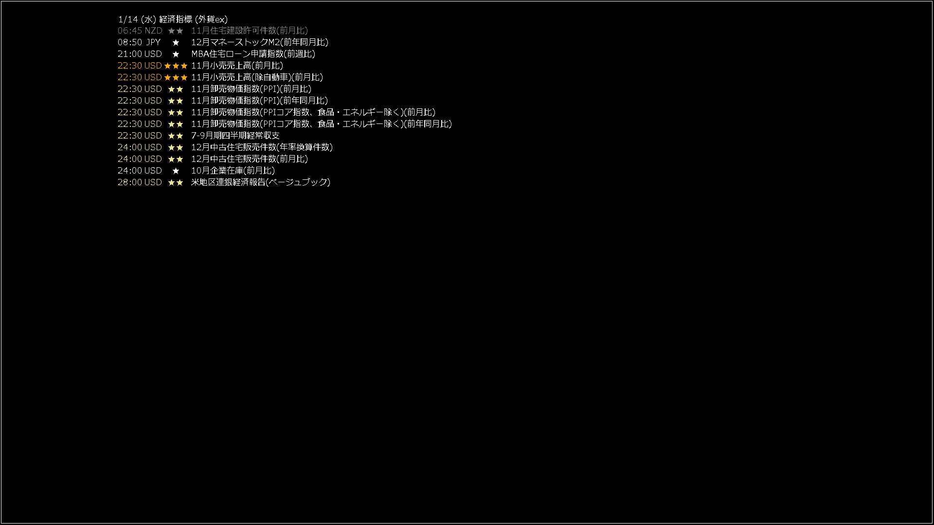 USDJPY-本日の経済指標と日足移動平均線(RSI)-2026.1.14 7:00:08