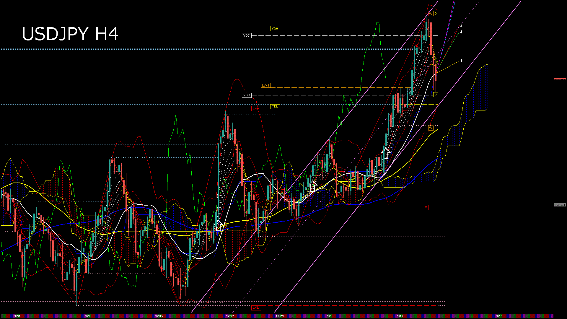 USDJPY-H4移動平均線と現在値(RSI)-2026.1.15 3:00:00