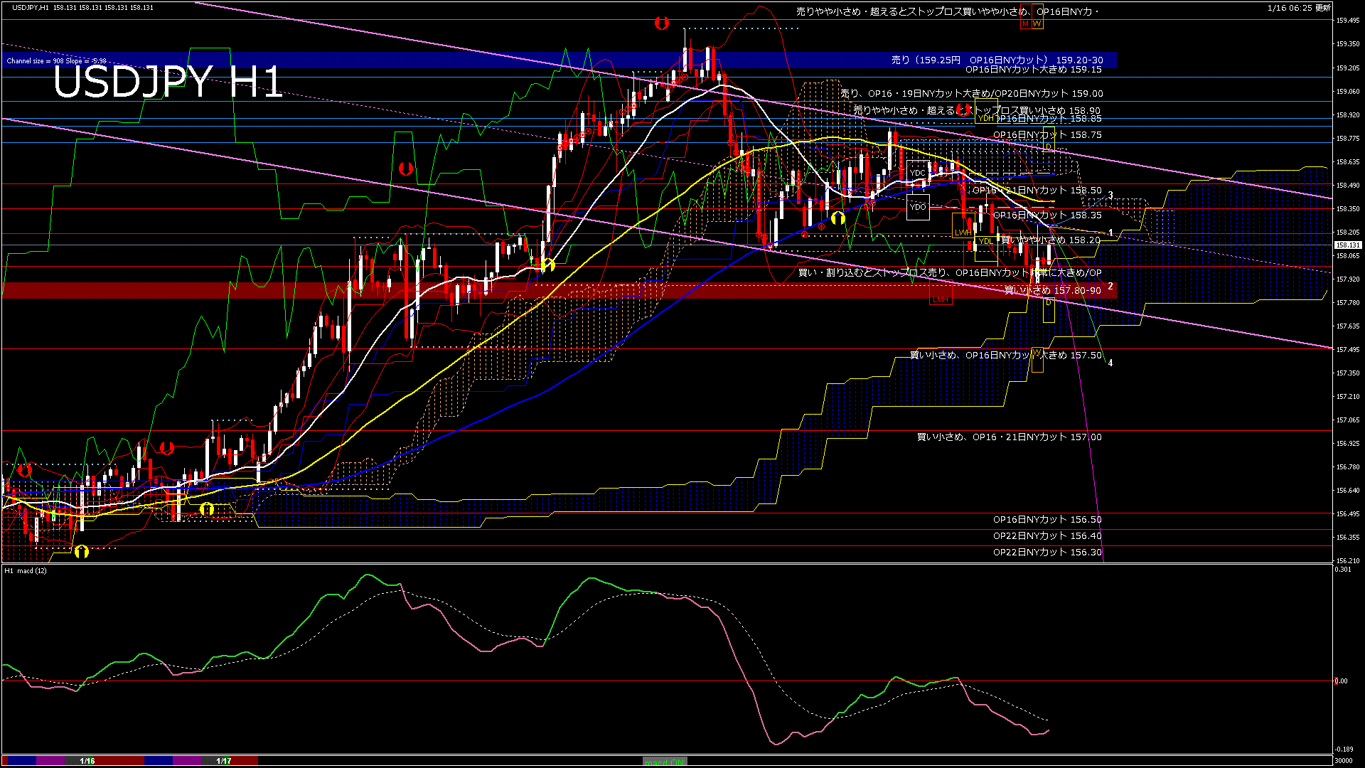 USDJPY-H1移動平均線と現在値(RSI)-2026.1.17 3:00:00