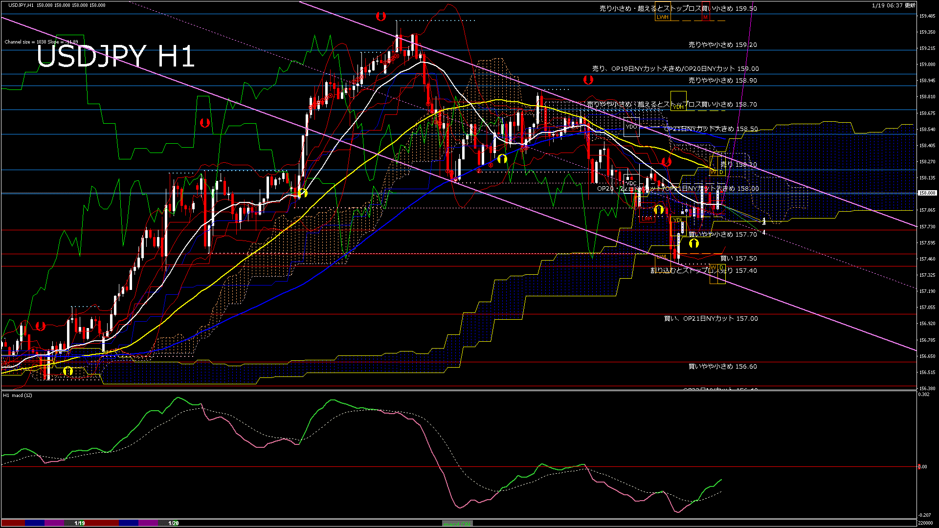 USDJPY-H1移動平均線と現在値(RSI)-2026.1.19 22:00:00