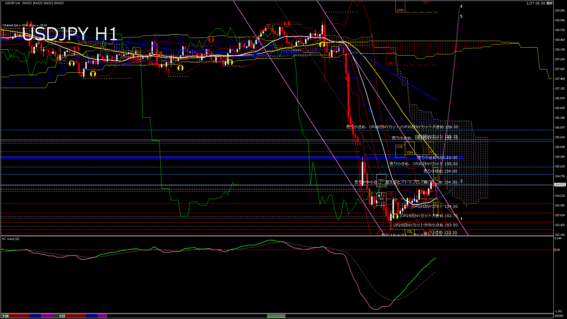 USDJPY-H4移動平均線と現在値(RSI)-2026.1.27 15:00:04