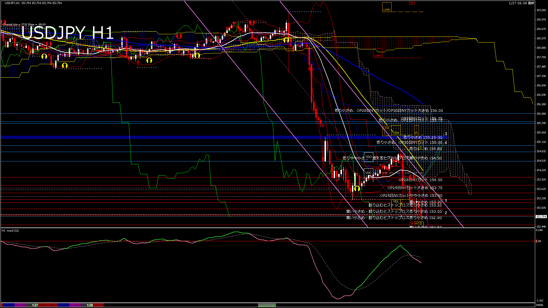 USDJPY-H1移動平均線と現在値(RSI)-2026.1.28 3:00:00