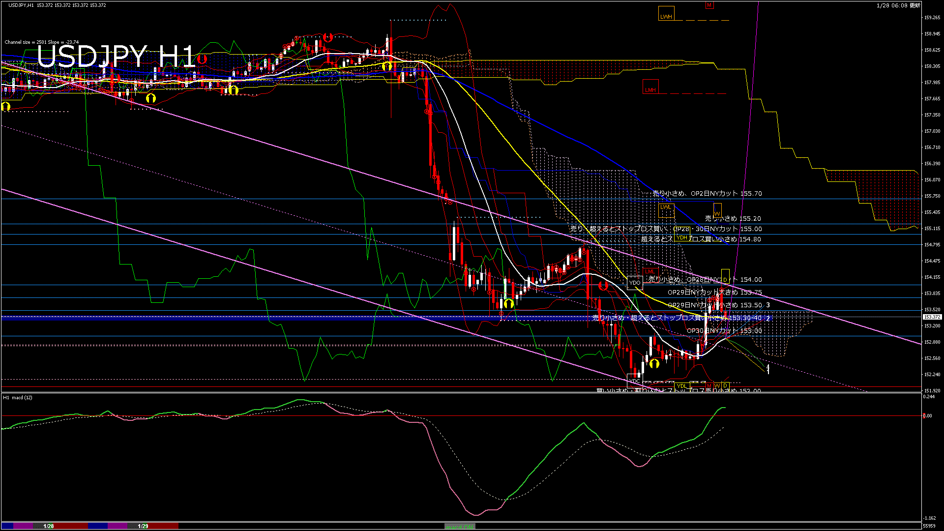 USDJPY-H1移動平均線と現在値(RSI)-2026.1.29 5:00:07