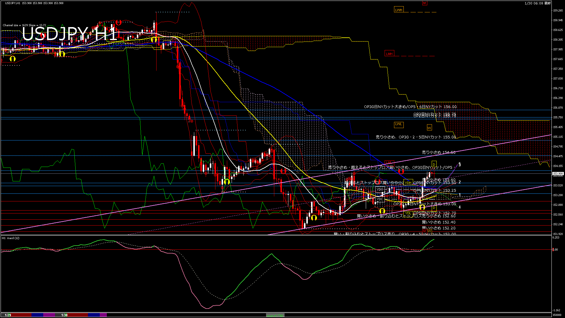 USDJPY-H1移動平均線と現在値(RSI)-2026.1.30 15:00:00