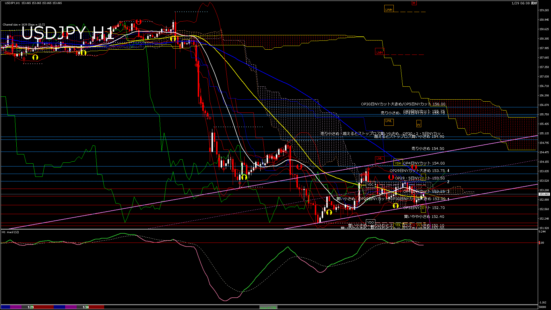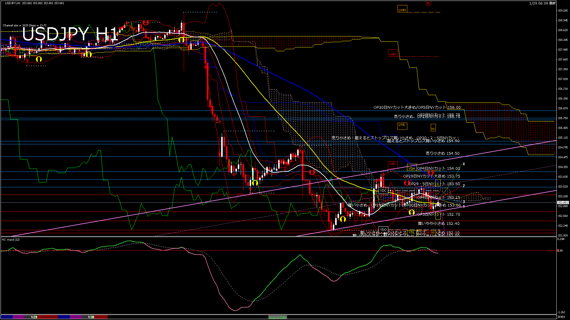 USDJPY-H1移動平均線と現在値(RSI)-2026.1.30 4:00:00