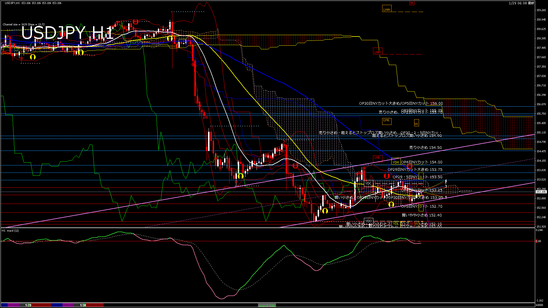 USDJPY-H1移動平均線と現在値(RSI)-2026.1.30 5:00:00