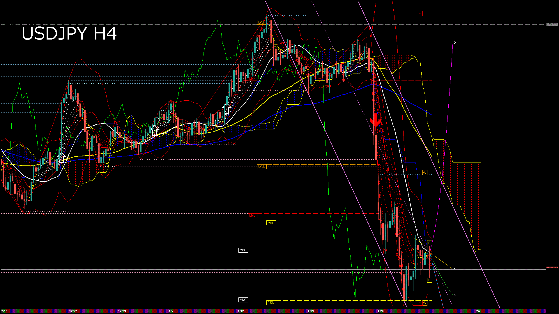USDJPY-H4移動平均線と現在値(RSI)-2026.1.30 3:00:00