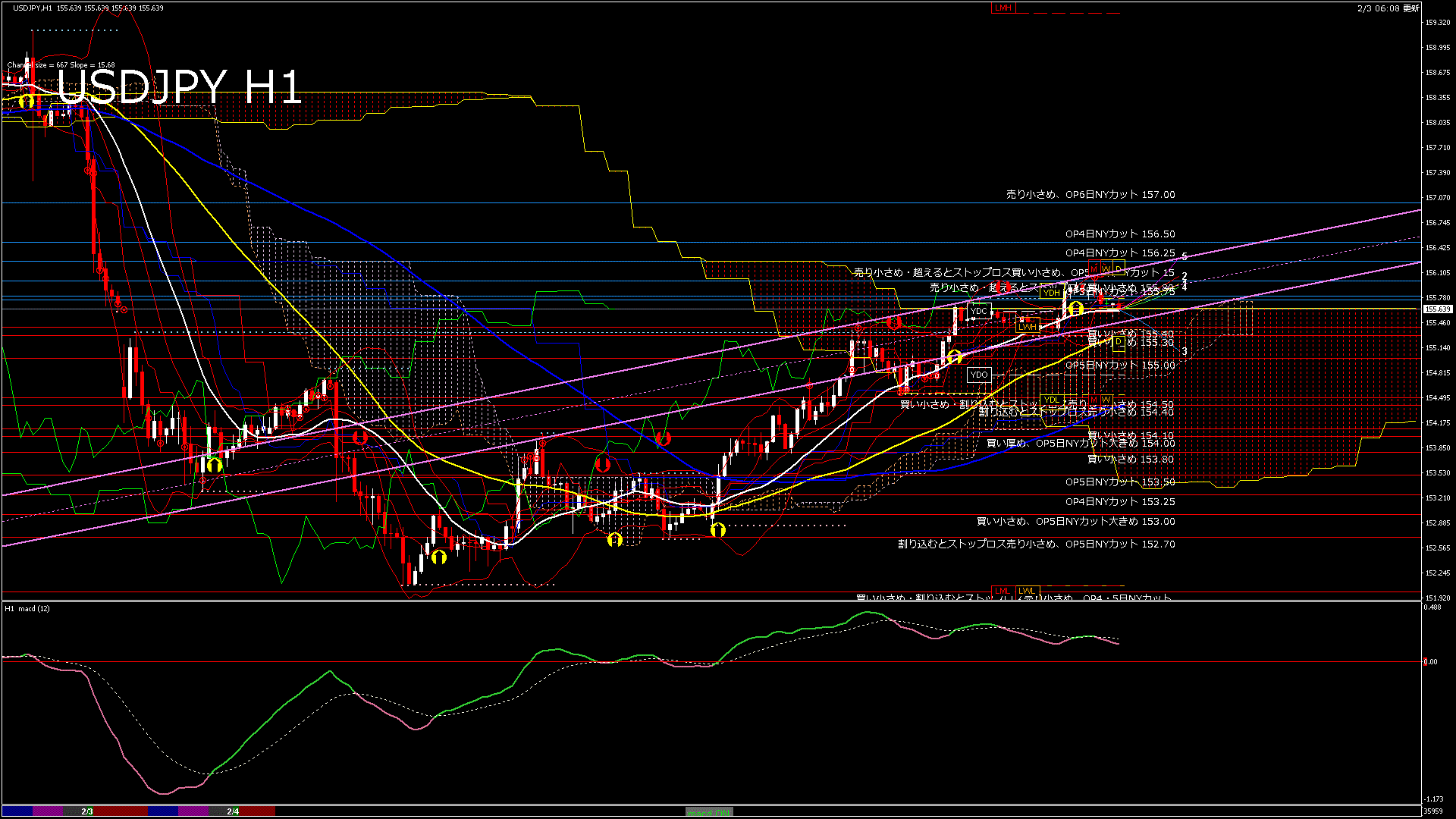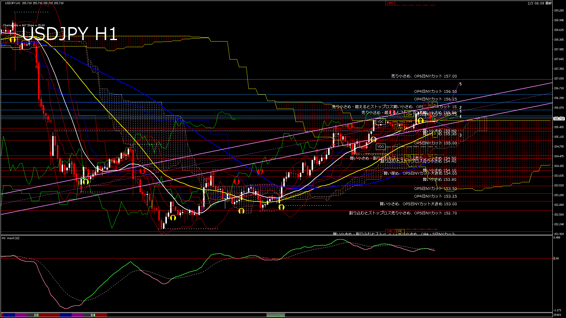 USDJPY-H1移動平均線と現在値(RSI)-2026.2.4 3:00:00
