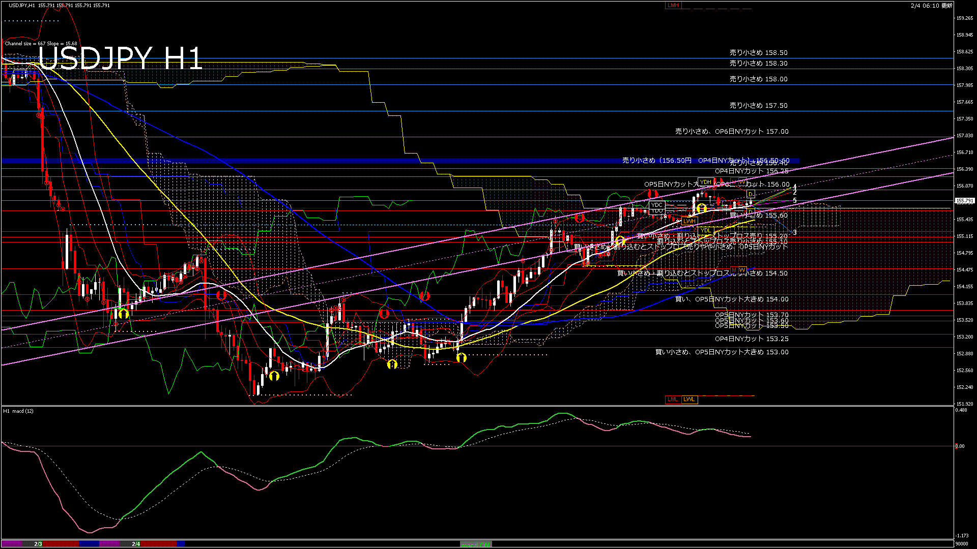 USDJPY-H1移動平均線と現在値(RSI)-2026.2.4 8:00:00