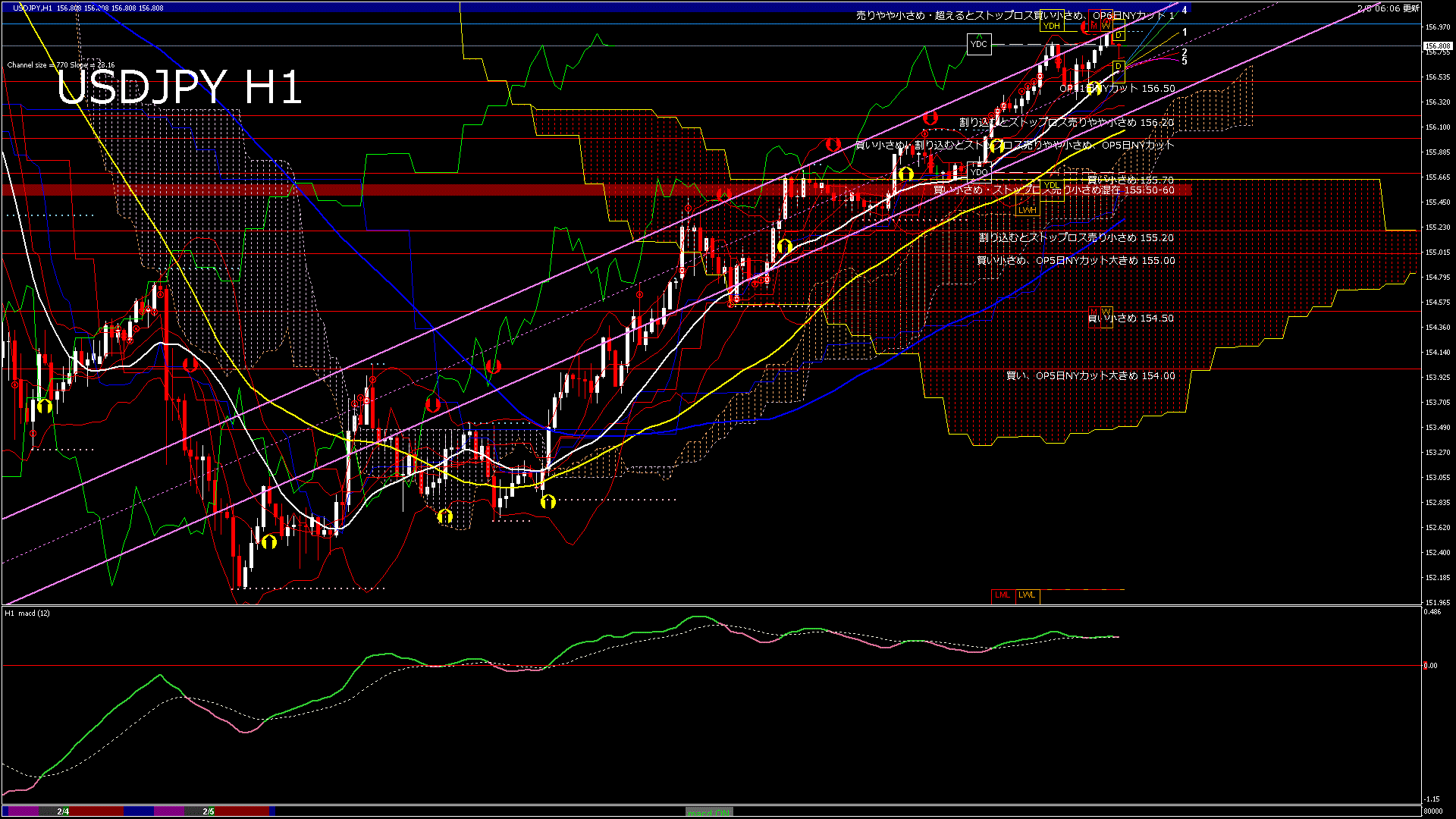 USDJPY-H1移動平均線と現在値(RSI)-2026.2.5 8:00:00