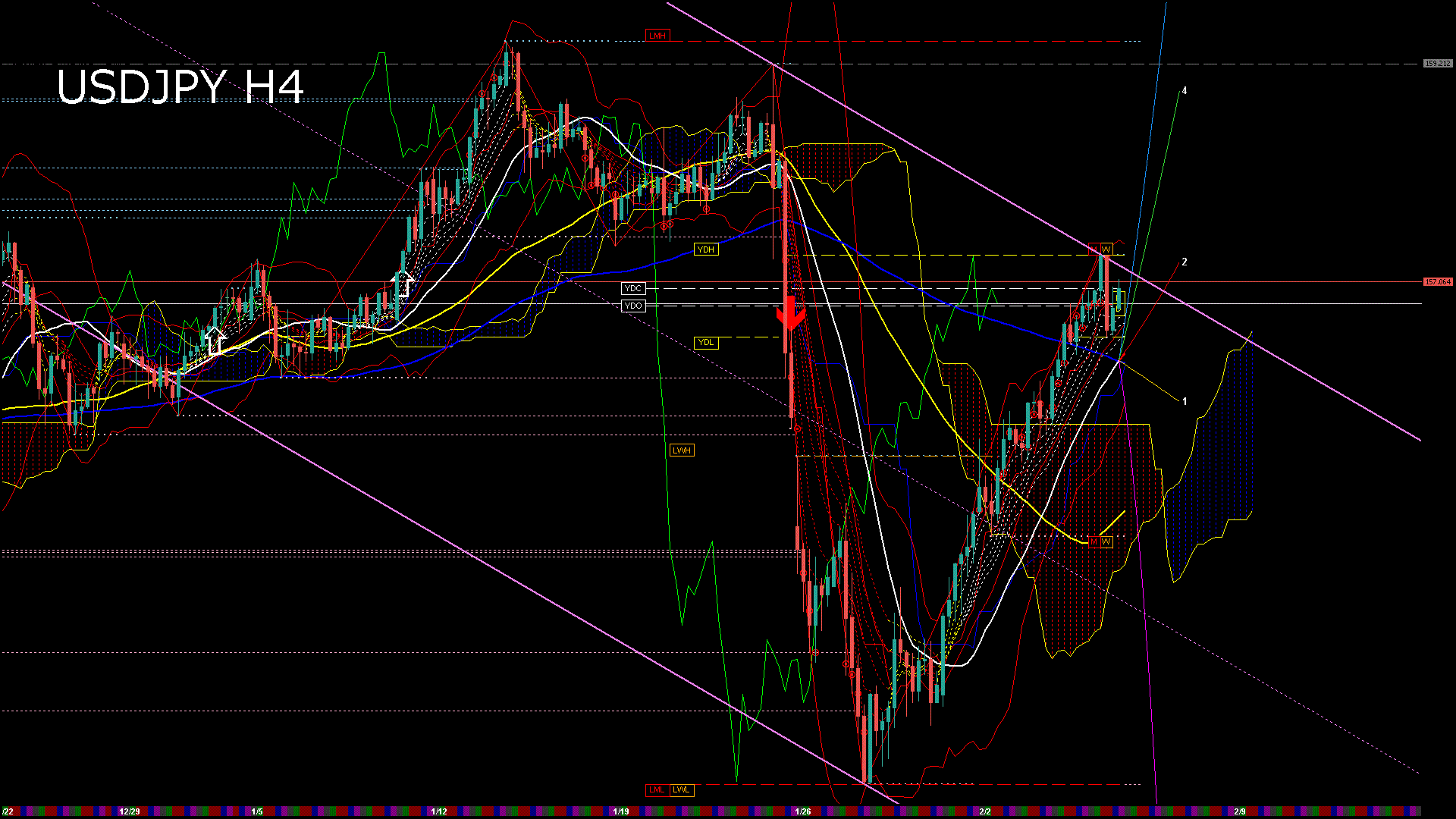 USDJPY-H1移動平均線と現在値(RSI)-2026.2.6 7:00:01