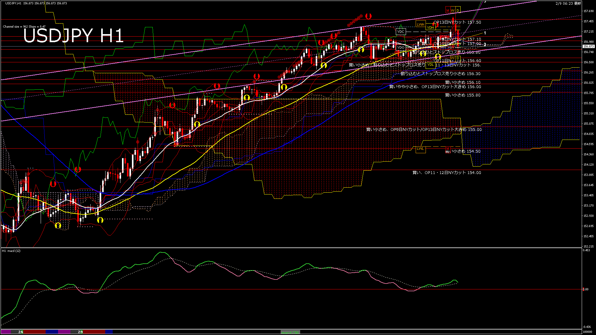 USDJPY-H1移動平均線と現在値(RSI)-2026.2.9 10:00:00