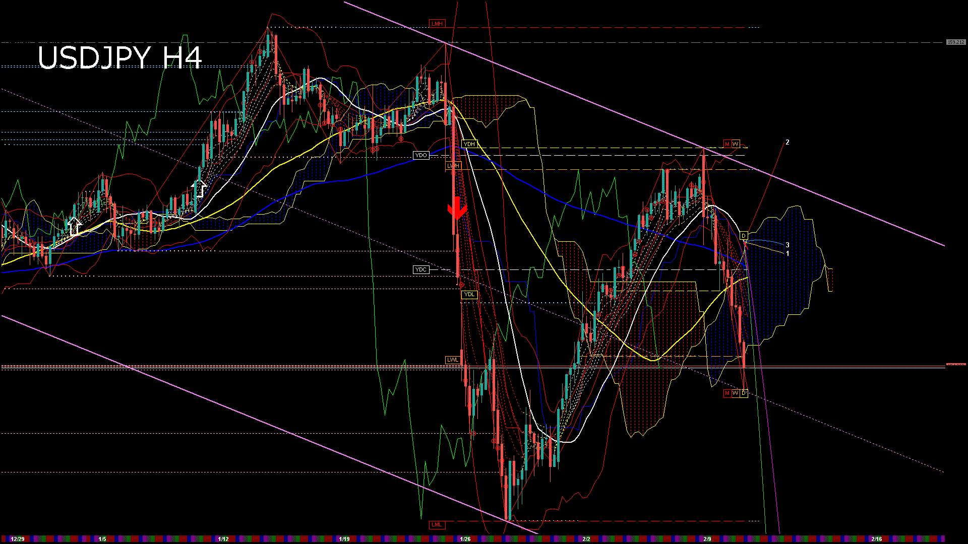 移動平均線の状態: 下降パーフェクトオーダー中(下向きトレンド)