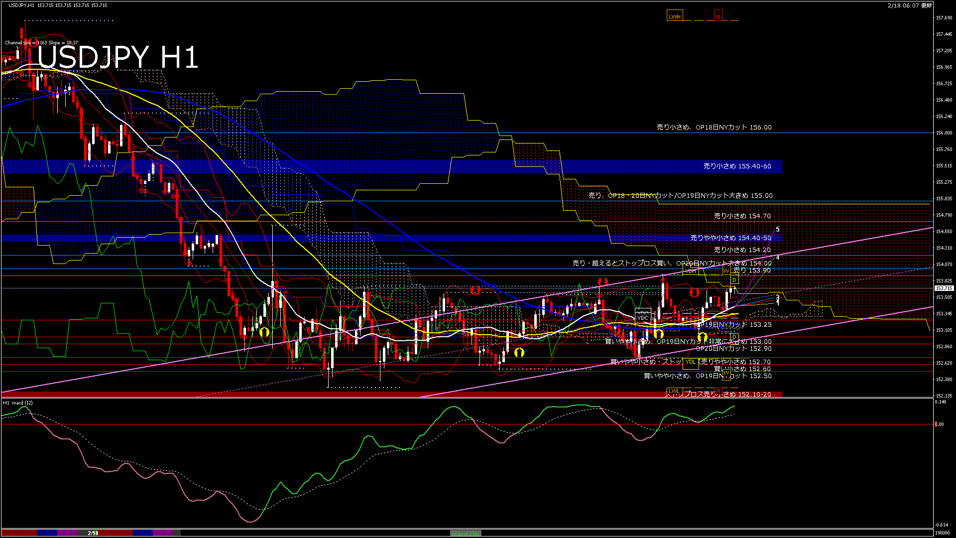 USDJPY-H1移動平均線と現在値(RSI)-2026.2.18 18:00:00