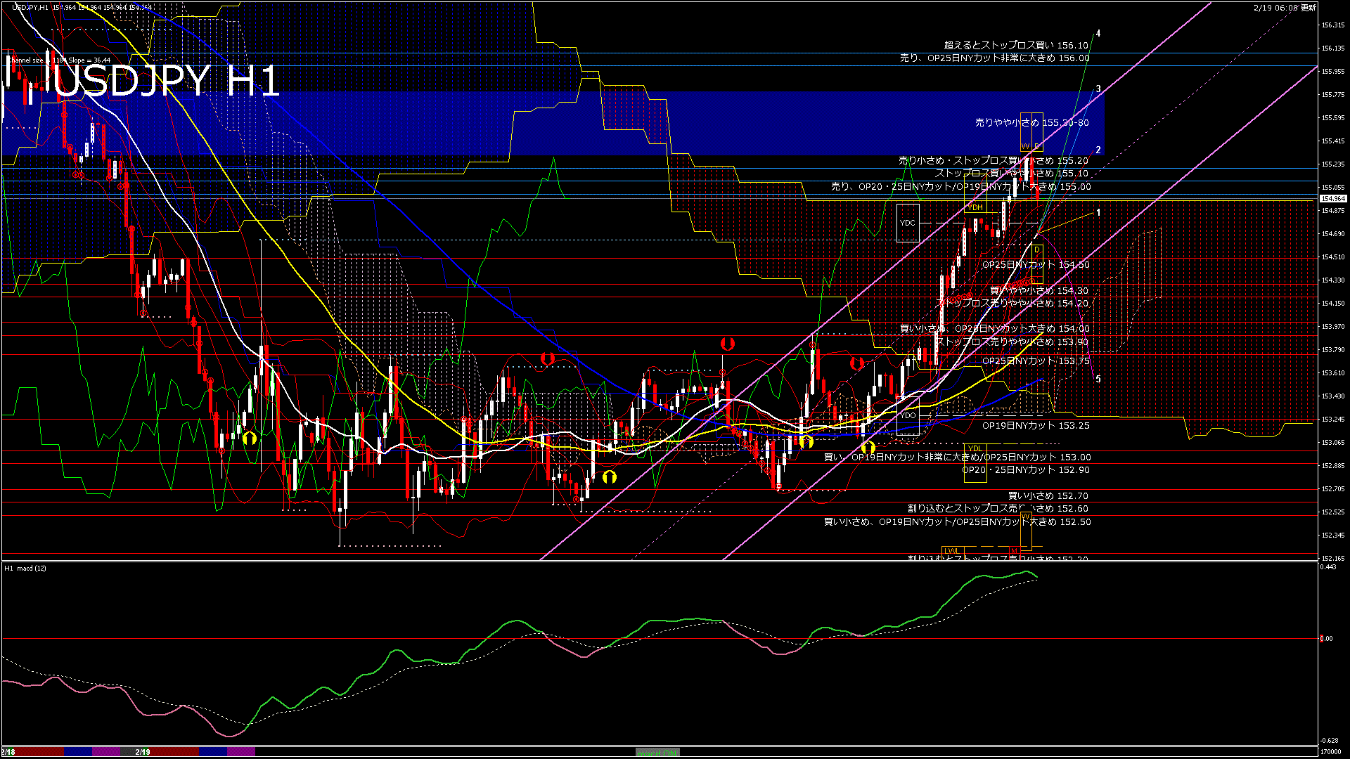 USDJPY-H1移動平均線と現在値(RSI)-2026.2.19 17:00:00