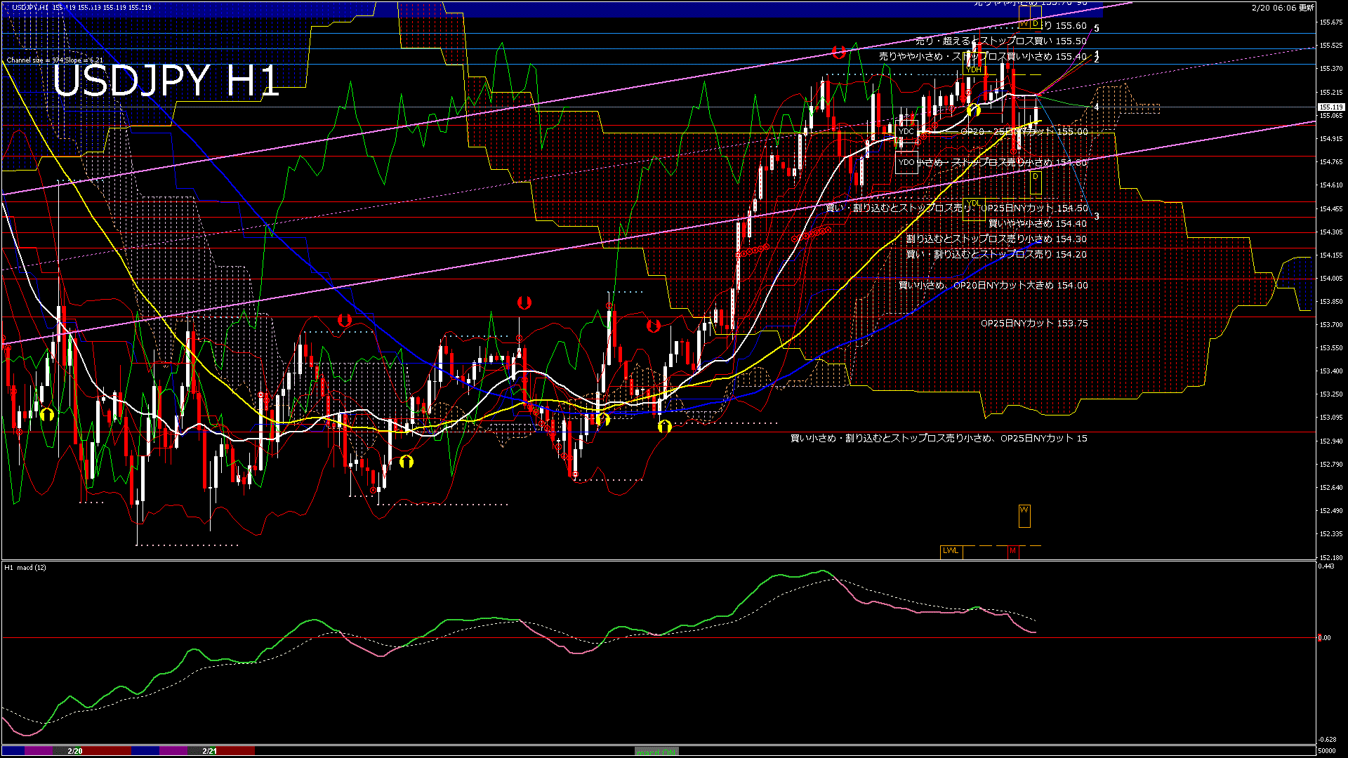 USDJPY-H1移動平均線と現在値(RSI)-2026.2.21 5:00:00