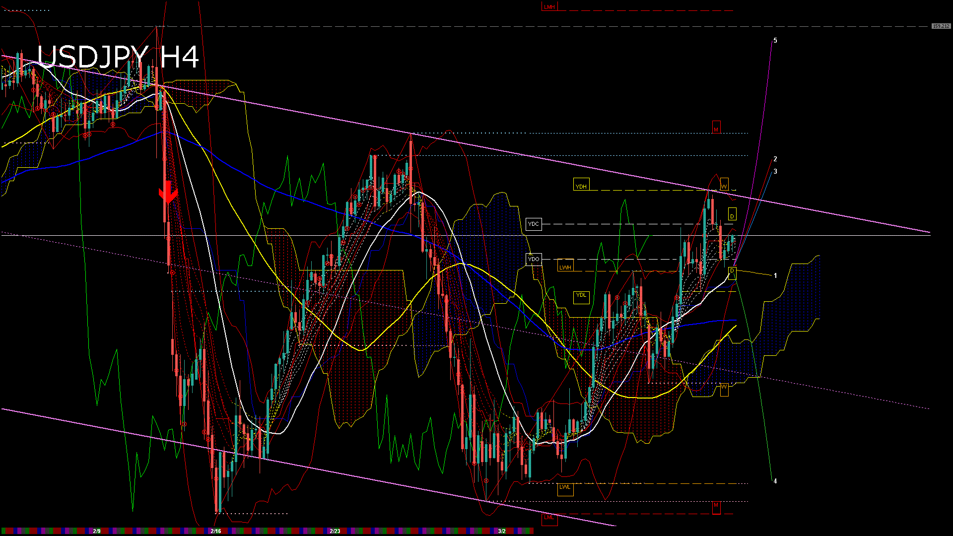 USDJPY-H1移動平均線と現在値(RSI)-2026.2.26 23:00:00