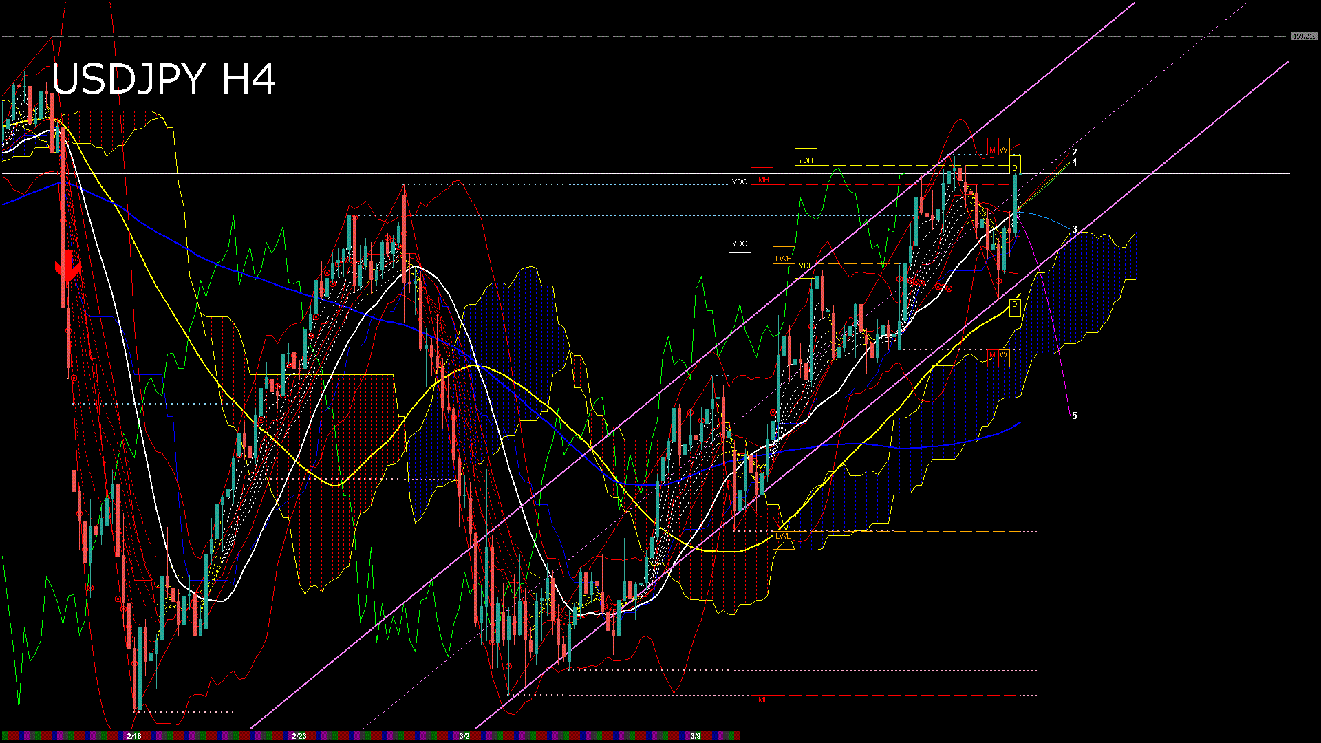 USDJPY-H4移動平均線と現在値(RSI)-2026.3.5 23:00:05