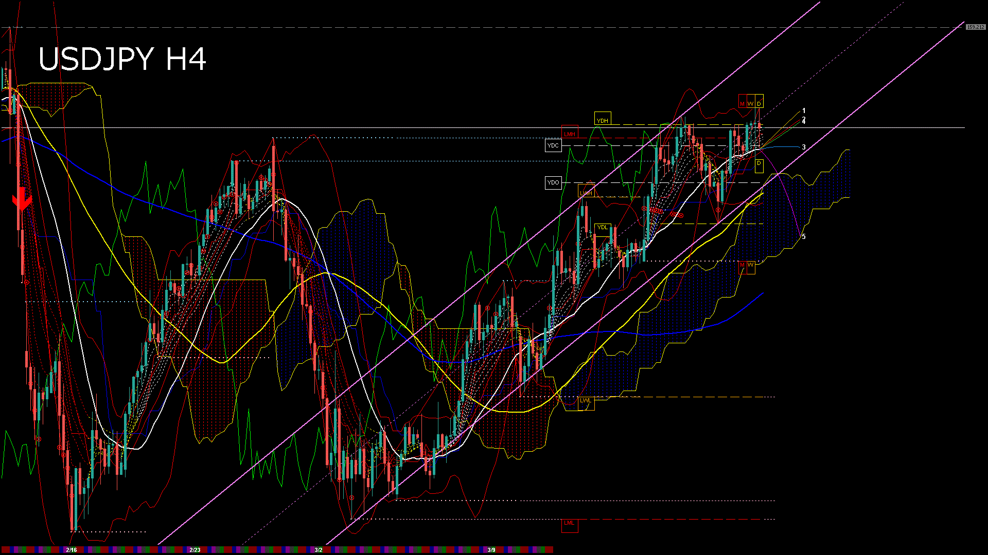 USDJPY-H4移動平均線と現在値(RSI)-2026.3.7 3:00:00