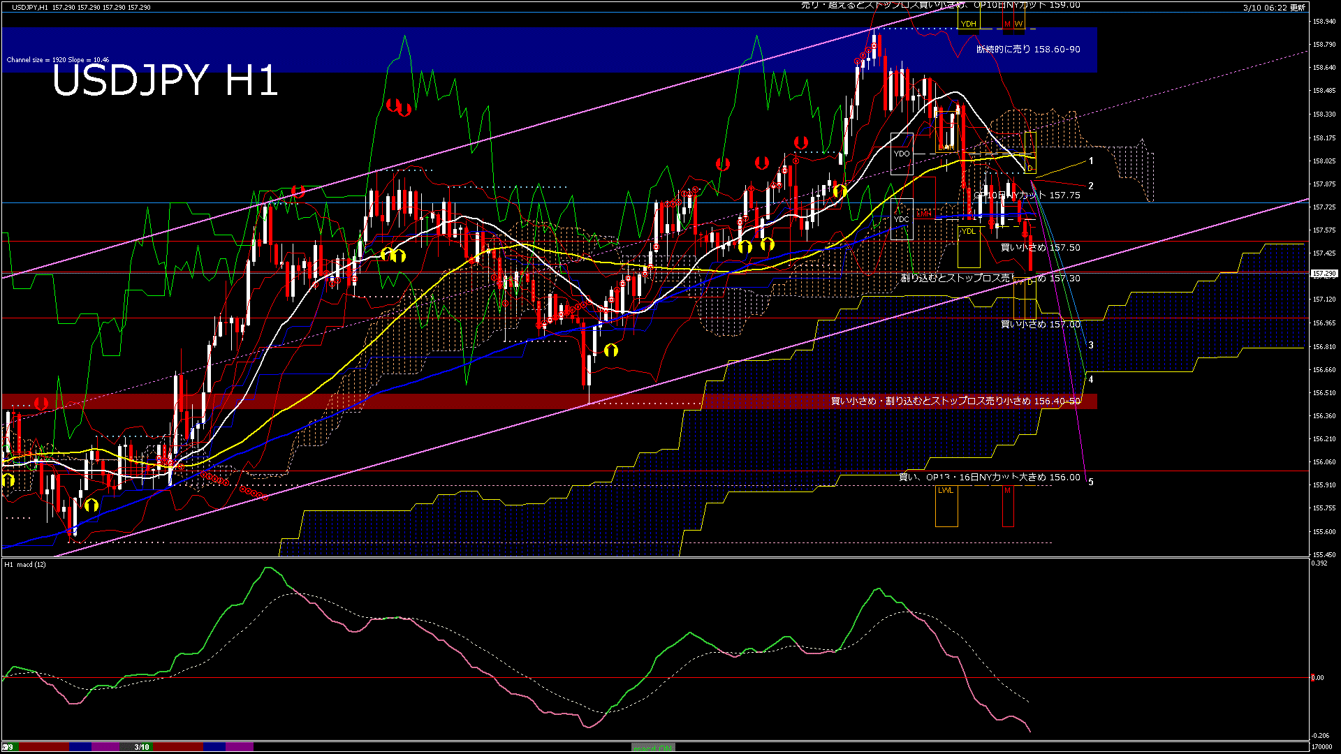USDJPY-H1移動平均線と現在値(RSI)-2026.3.10 17:00:00