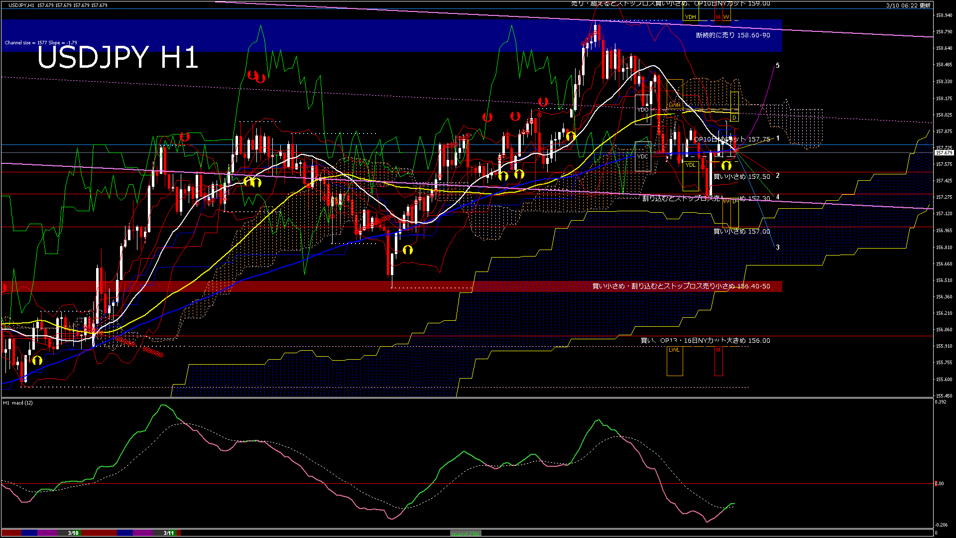 USDJPY-H1移動平均線と現在値(RSI)-2026.3.11 0:00:00