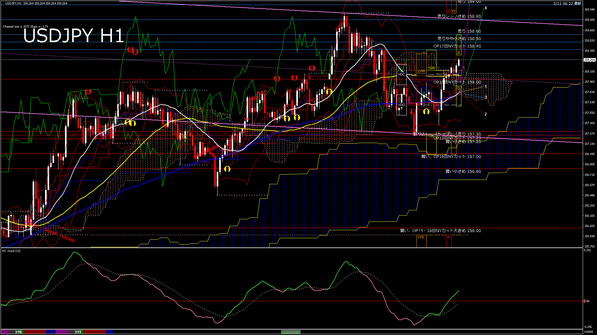 USDJPY-H1移動平均線と現在値(RSI)-2026.3.11 10:00:00