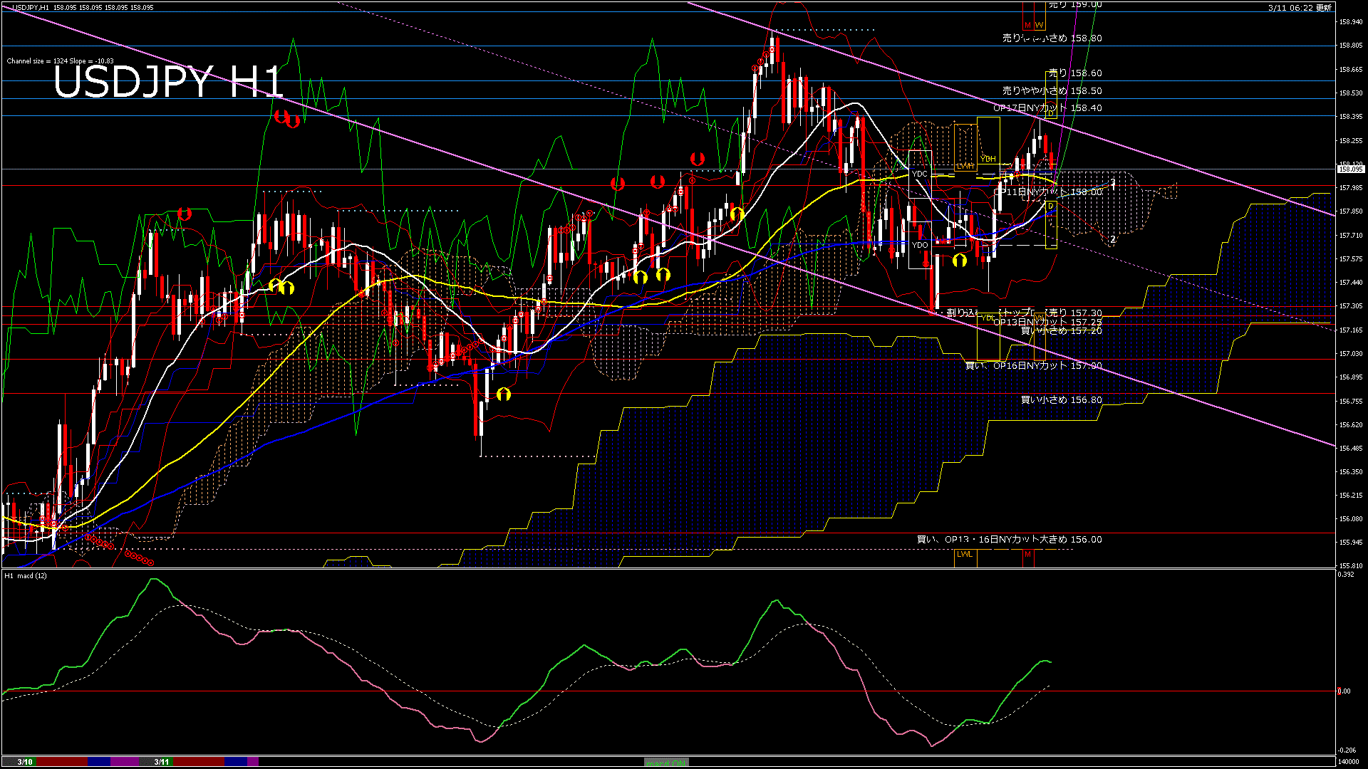 USDJPY-H1移動平均線と現在値(RSI)-2026.3.11 13:00:00
