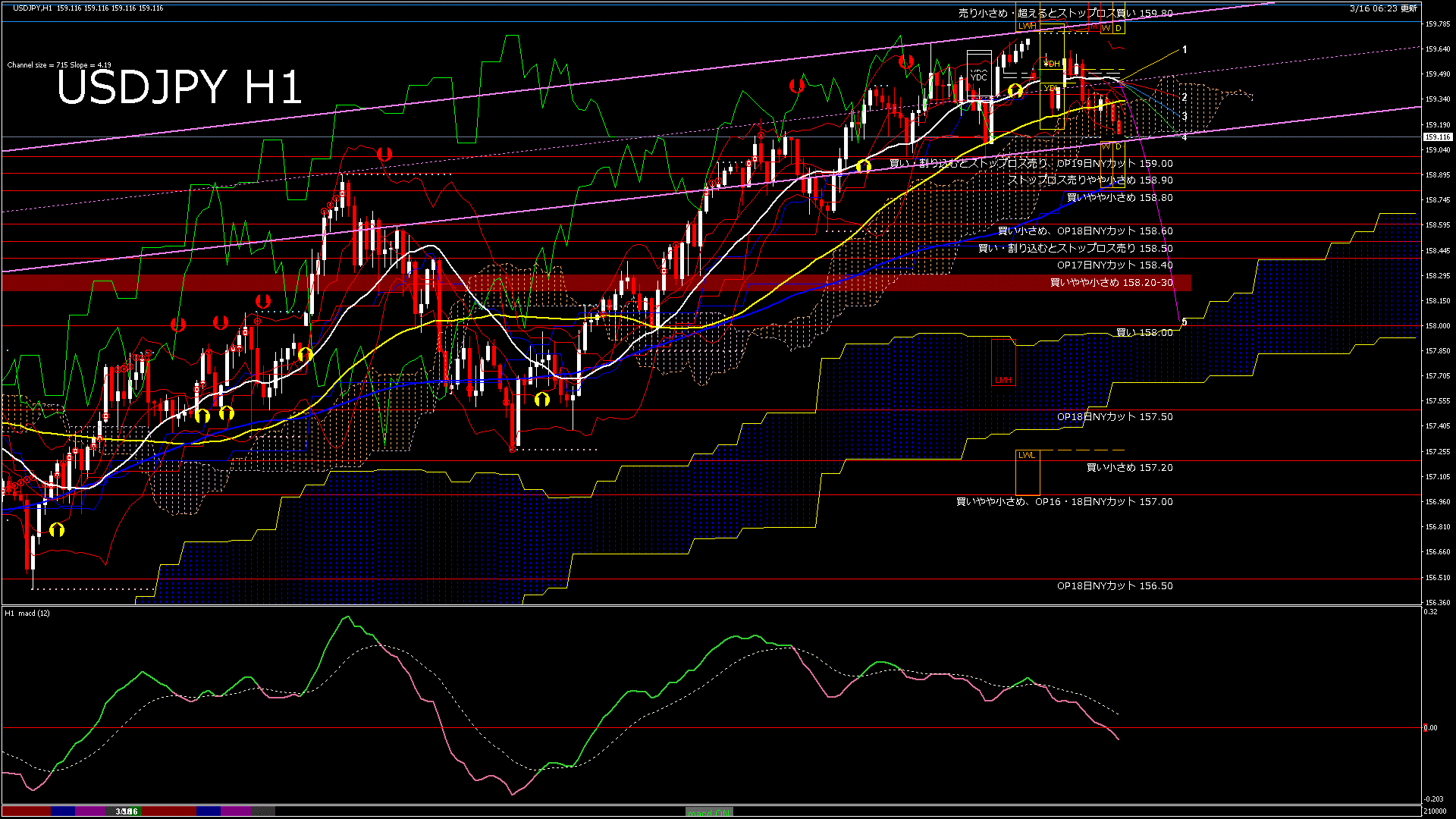 USDJPY-H1移動平均線と現在値(RSI)-2026.3.16 20:00:00