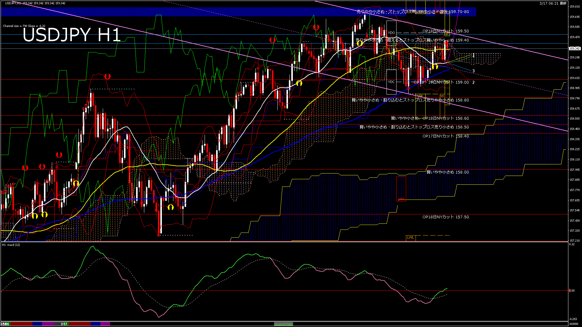 USDJPY-H4移動平均線と現在値(RSI)-2026.3.17 15:00:07