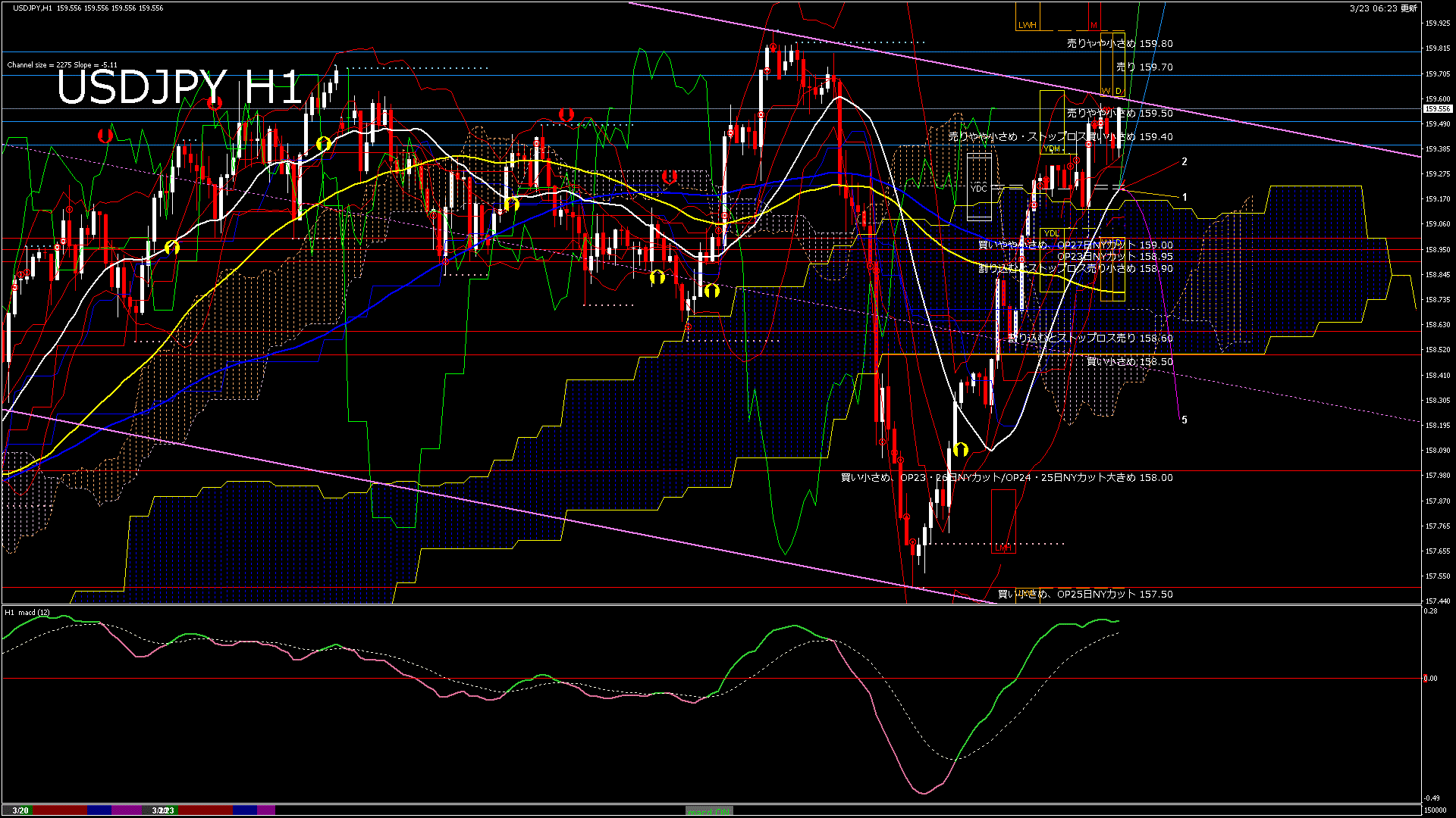 USDJPY-H1移動平均線と現在値(RSI)-2026.3.23 14:00:02