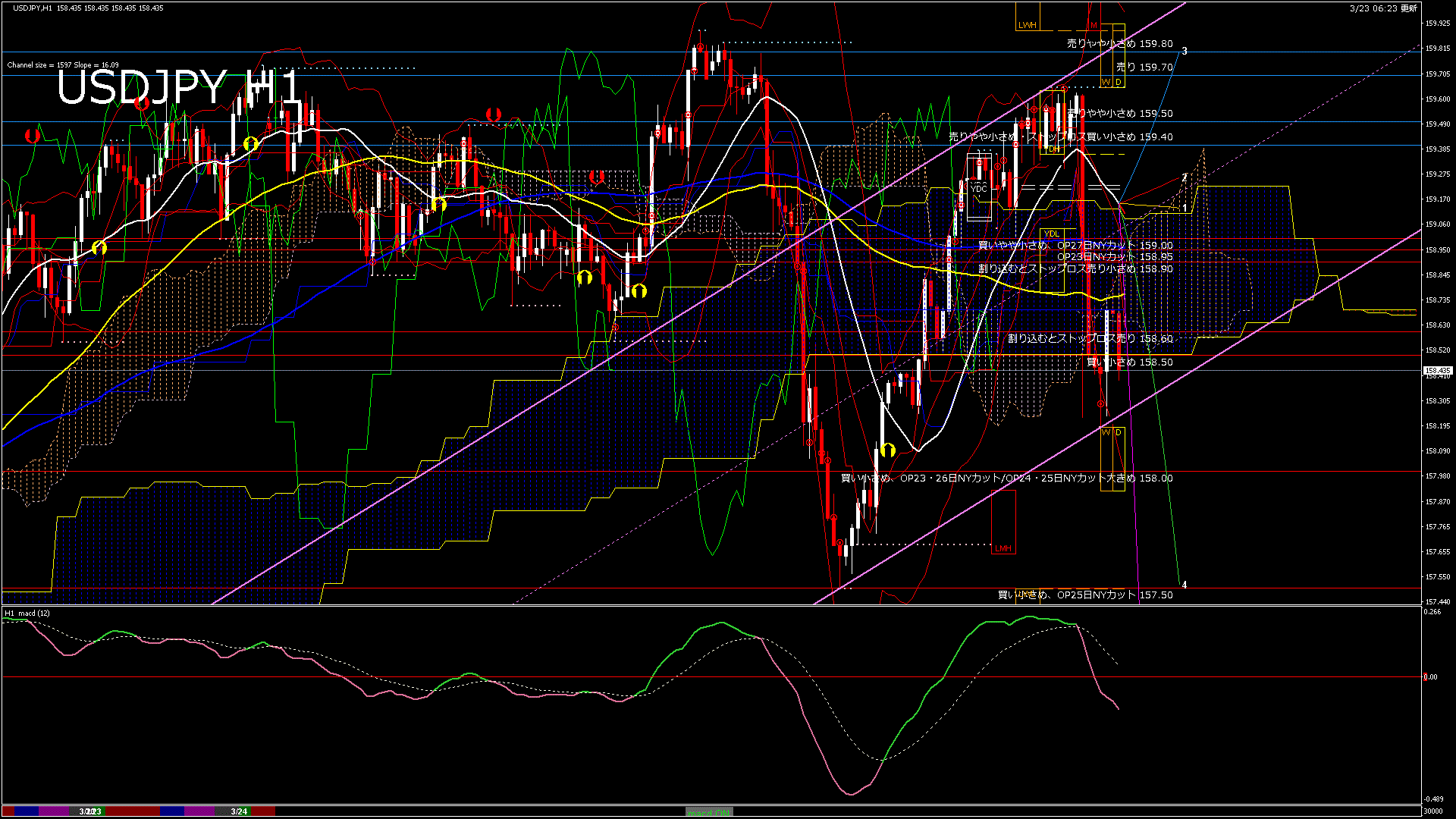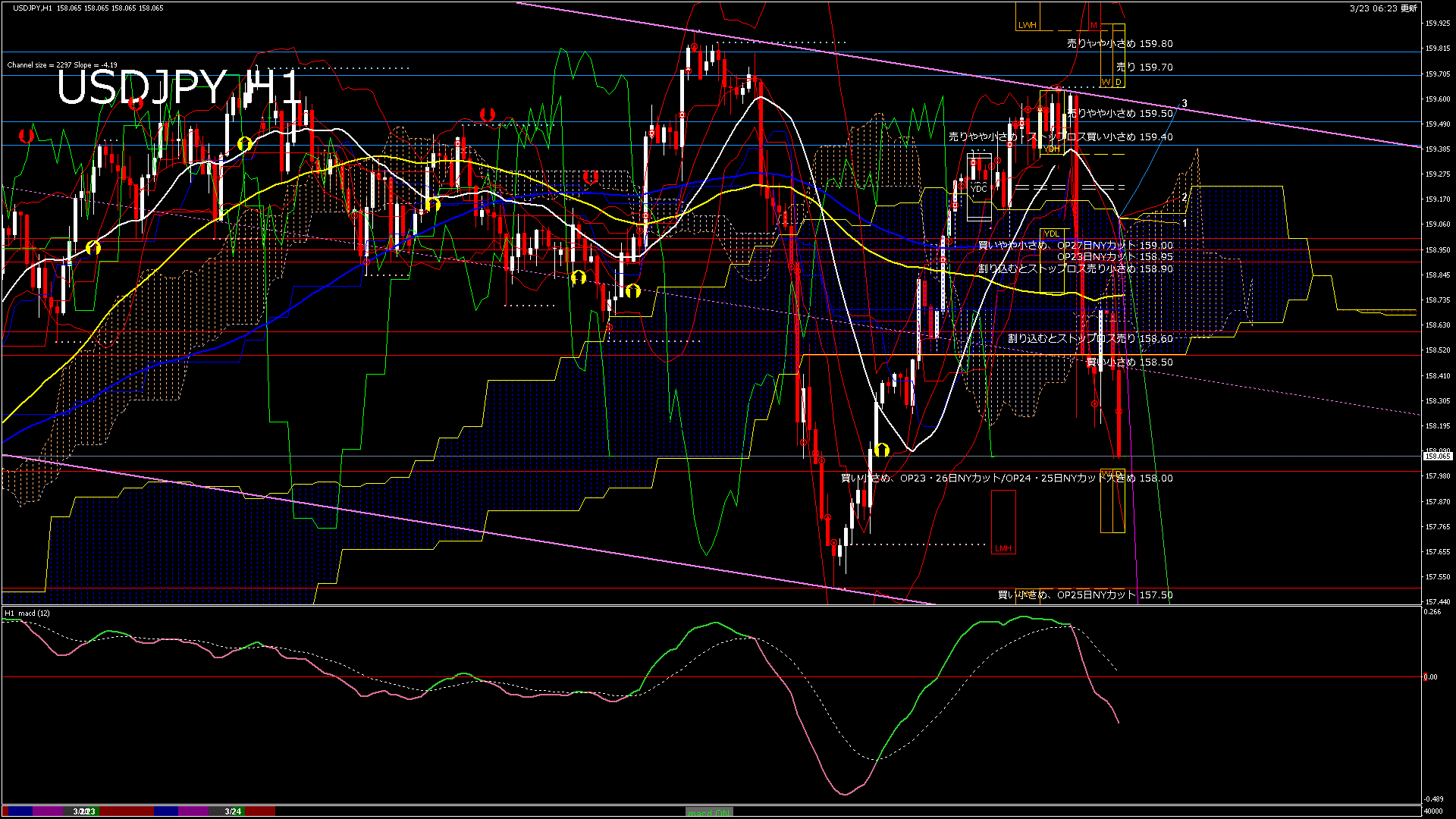 USDJPY-H1移動平均線と現在値(RSI)-2026.3.24 3:00:00