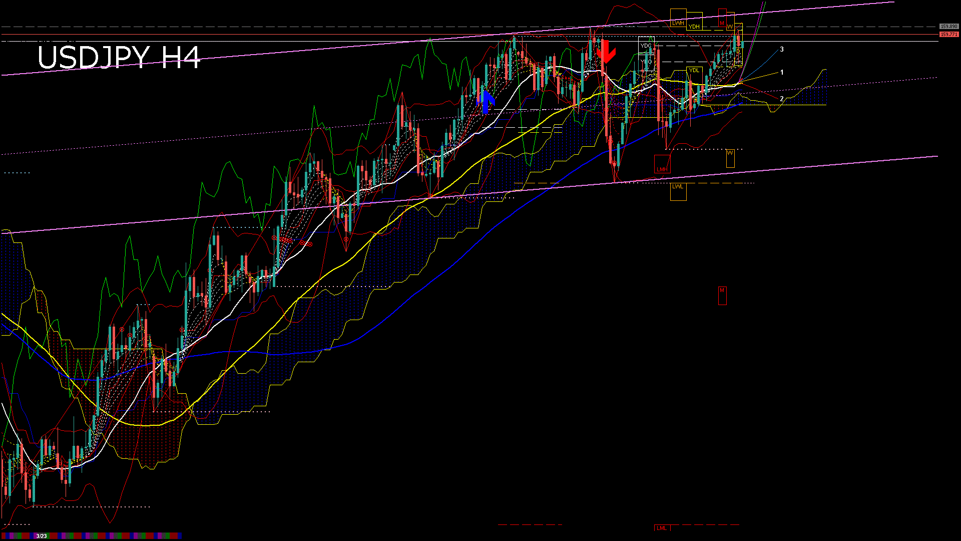 USDJPY-本日の経済指標と日足移動平均線(RSI)-2026.3.27 6:00:09
