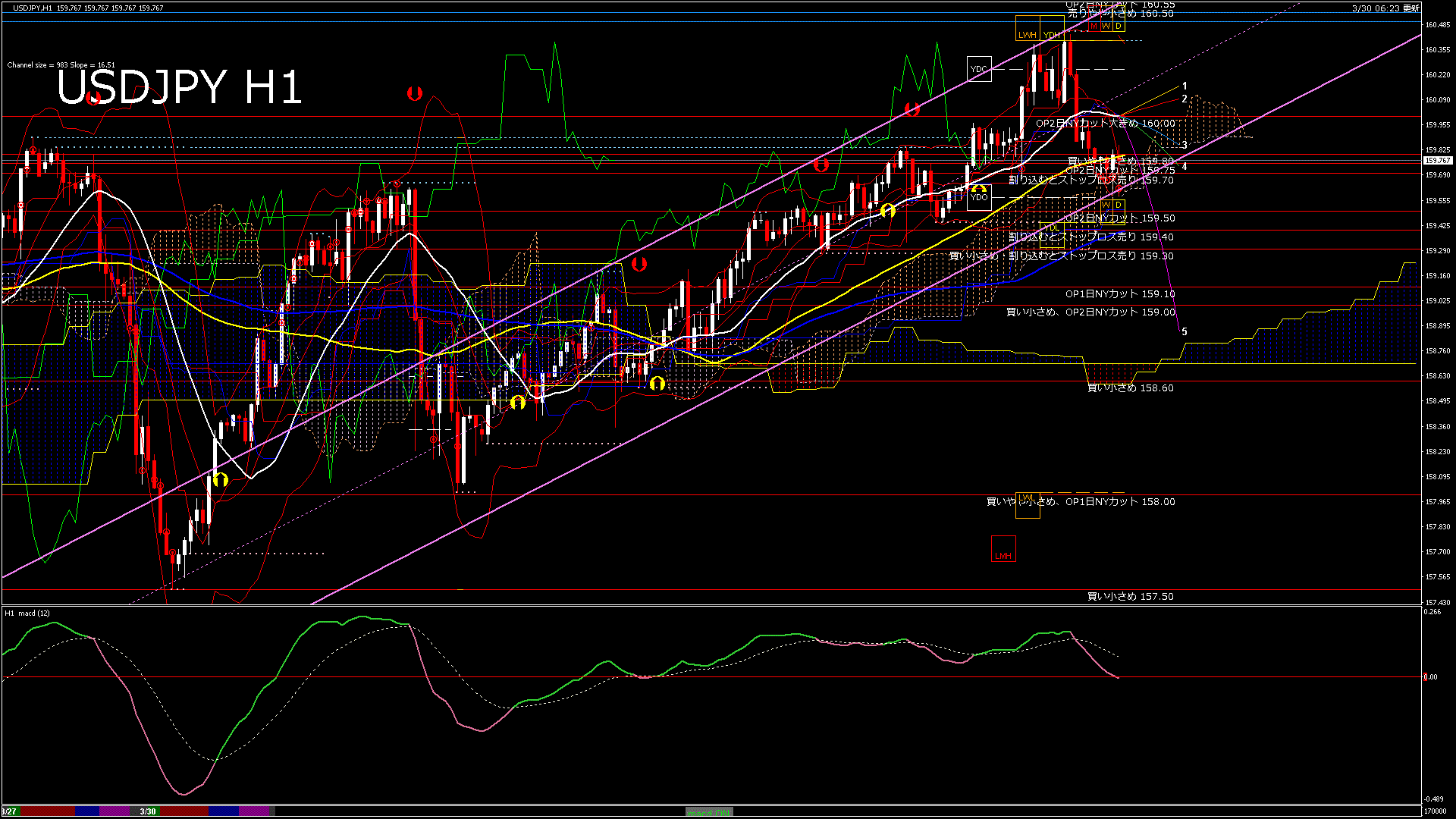 USDJPY-H1移動平均線と現在値(RSI)-2026.3.30 17:00:00