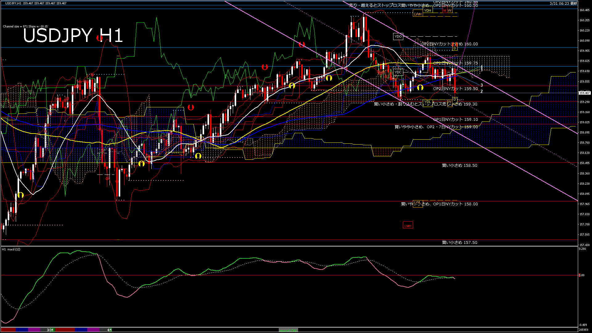 USDJPY-H1移動平均線と現在値(RSI)-2026.3.31 20:00:00