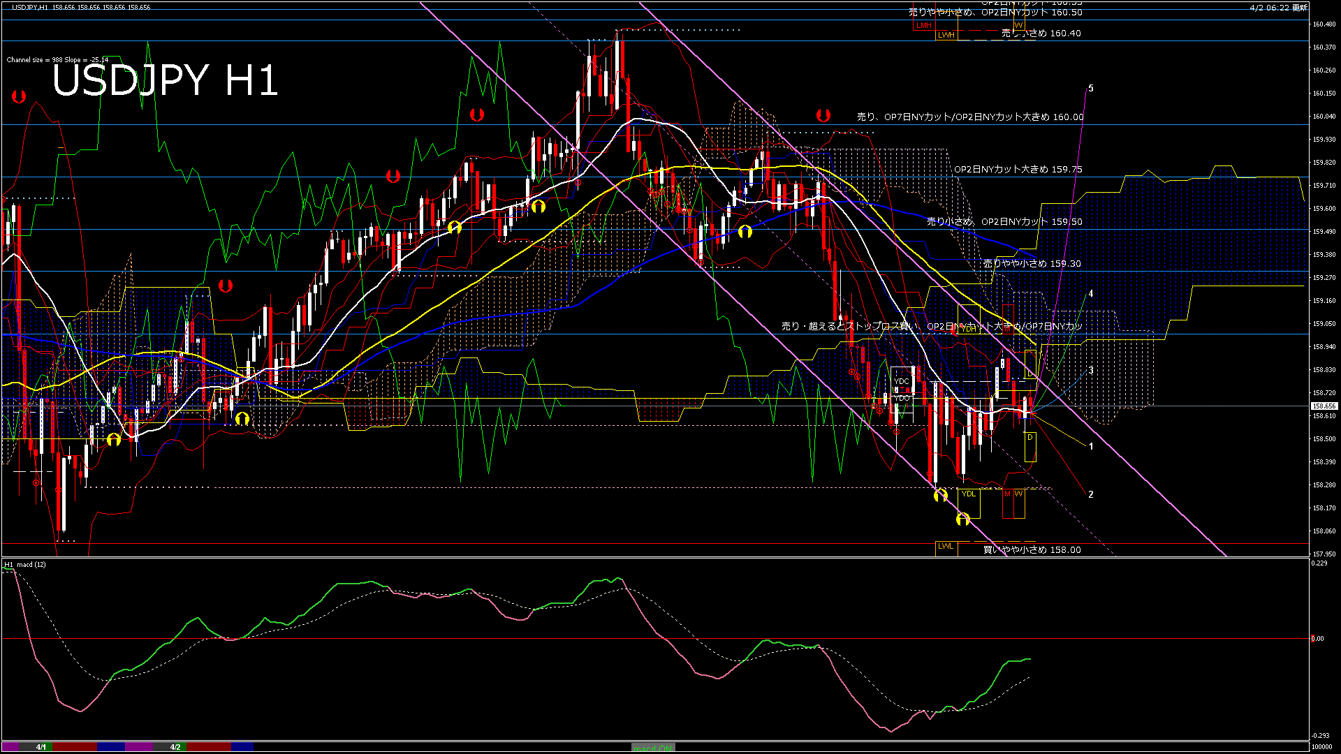 USDJPY-H1移動平均線と現在値(RSI)-2026.4.2 10:00:00