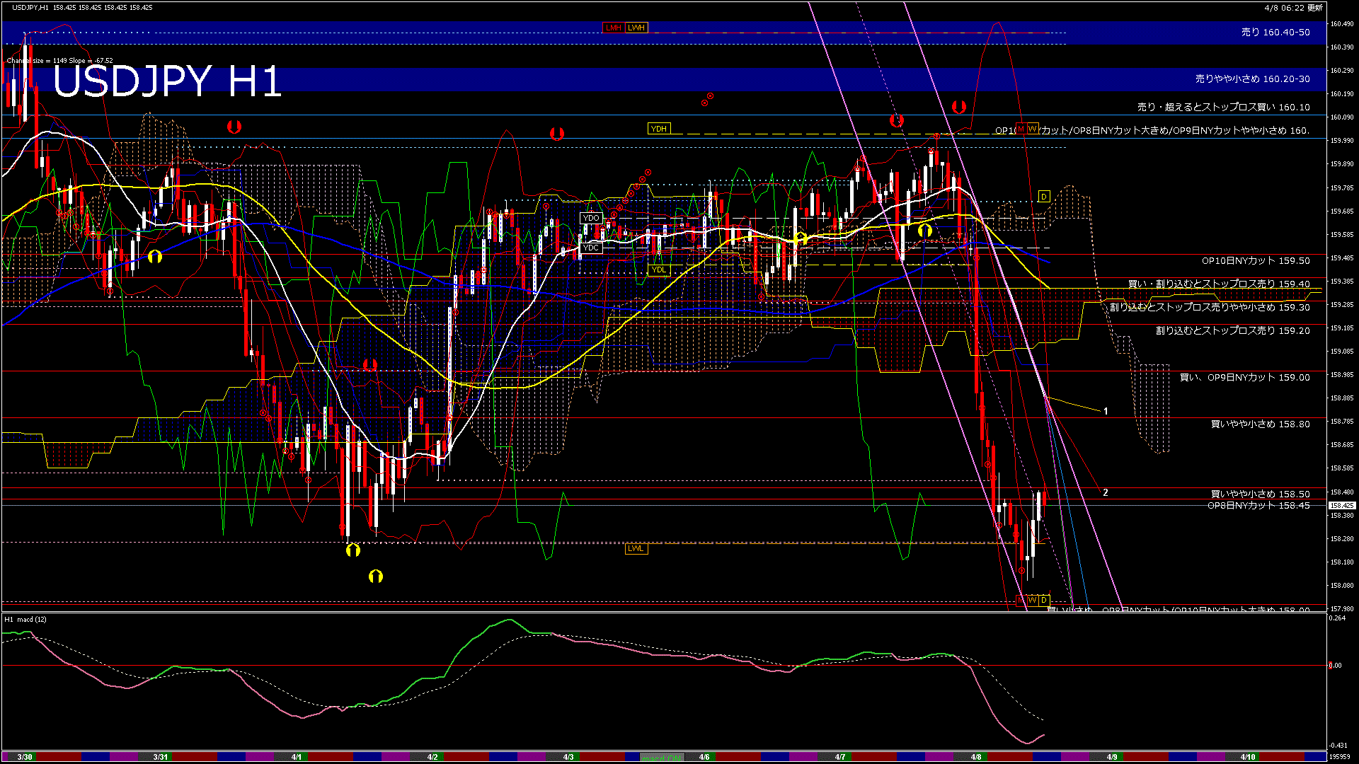 USDJPY-H1移動平均線と現在値(RSI)-2026.4.8 20:00:00