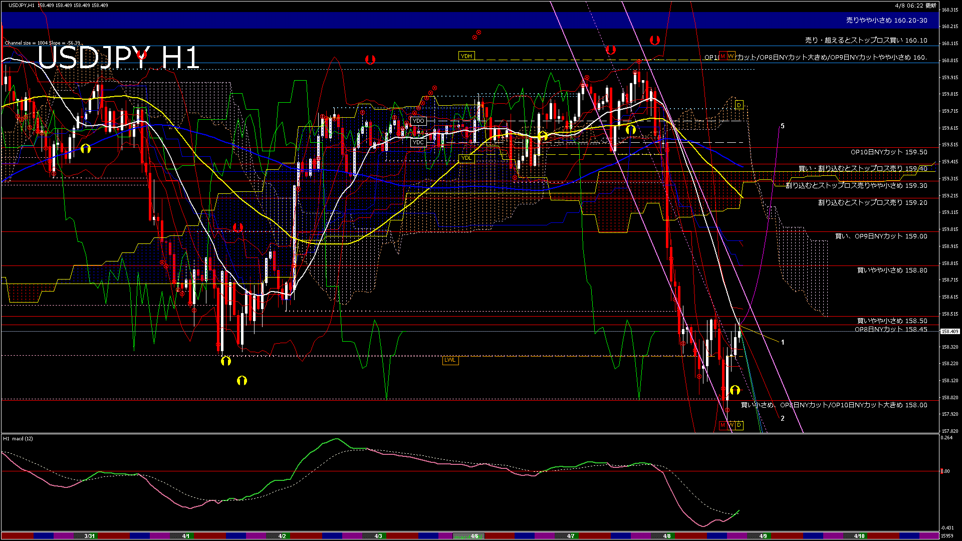 USDJPY-H1移動平均線と現在値(RSI)-2026.4.9 2:00:00