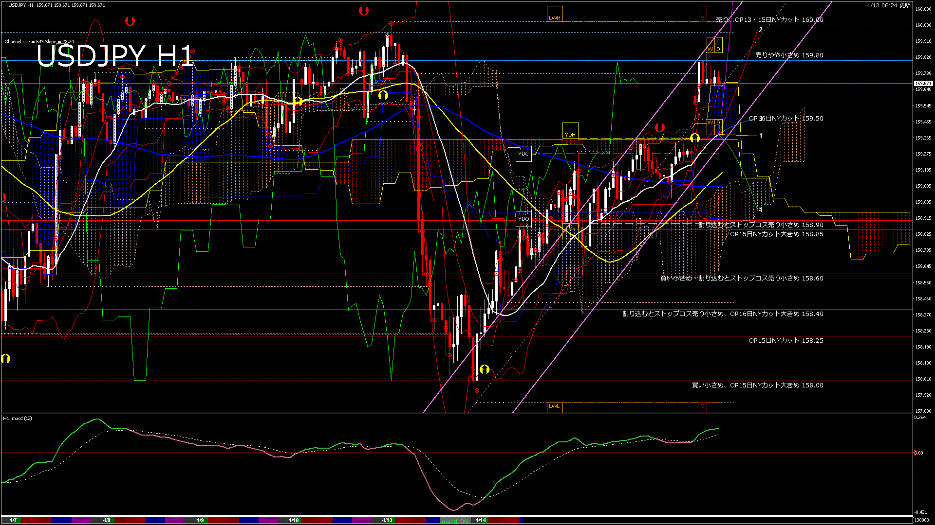USDJPY-H1移動平均線と現在値(RSI)-2026.4.13 13:00:00