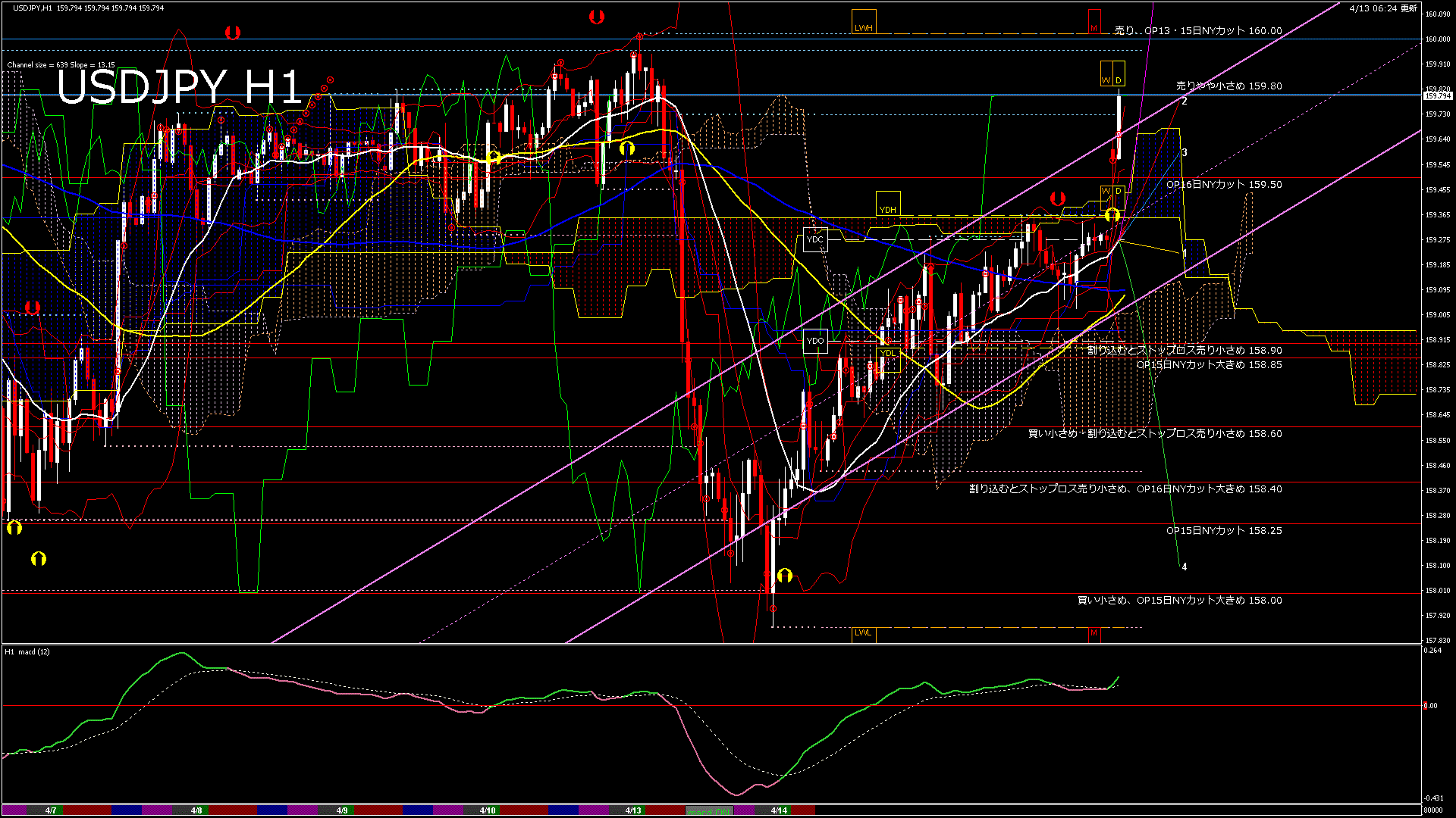 USDJPY-H1移動平均線と現在値(RSI)-2026.4.13 8:00:00