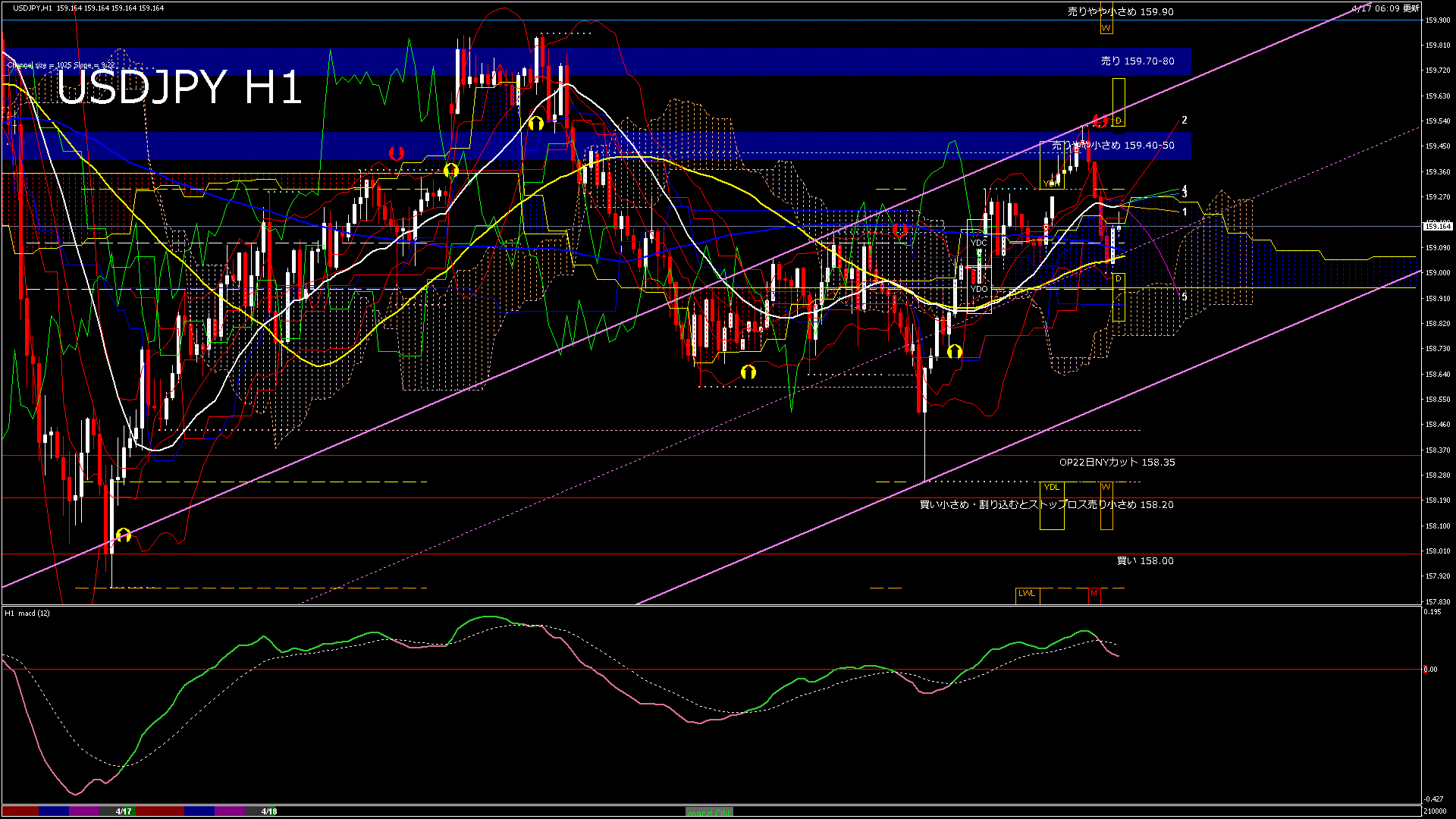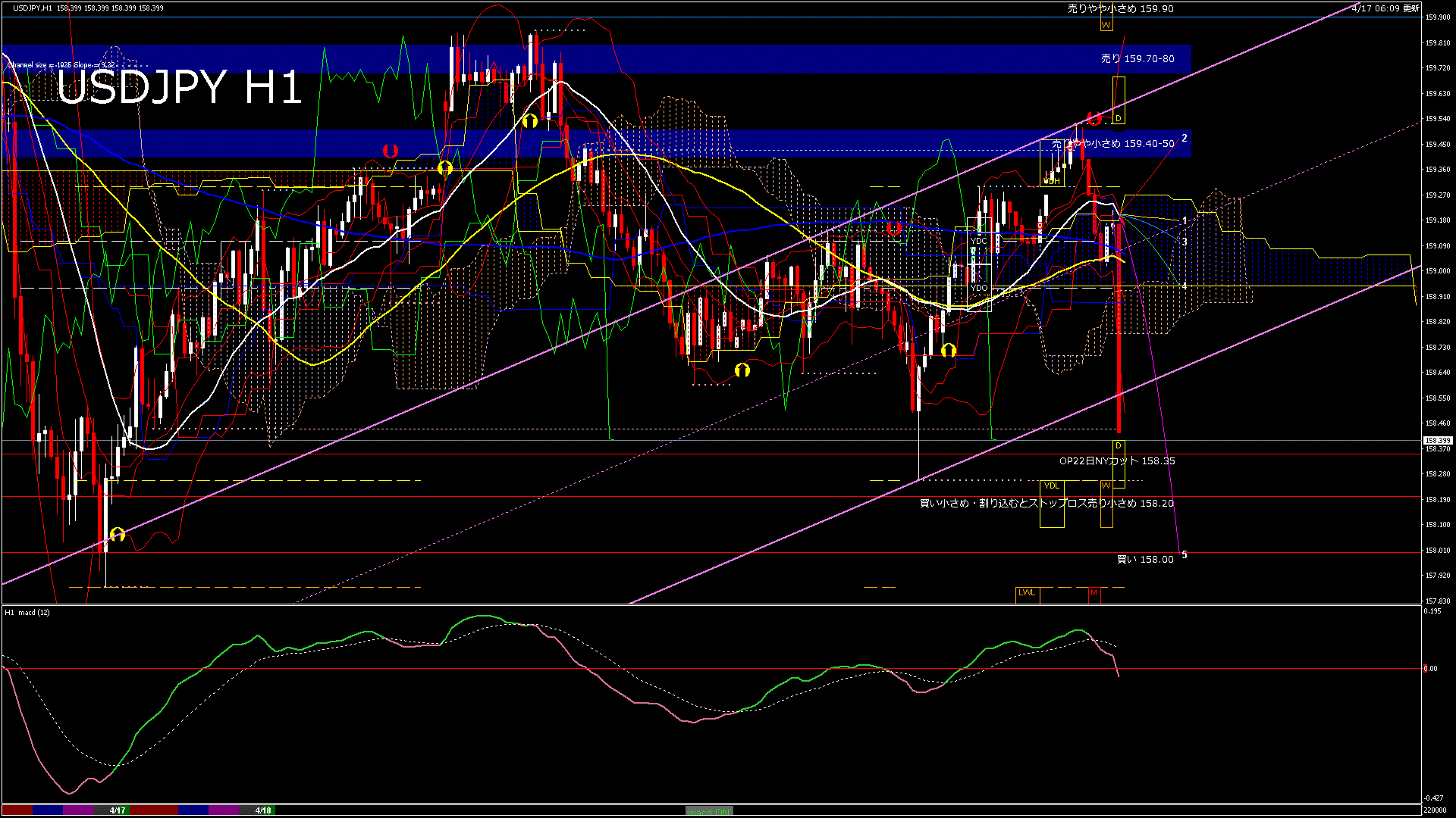 USDJPY-H1移動平均線と現在値(RSI)-2026.4.17 21:00:00