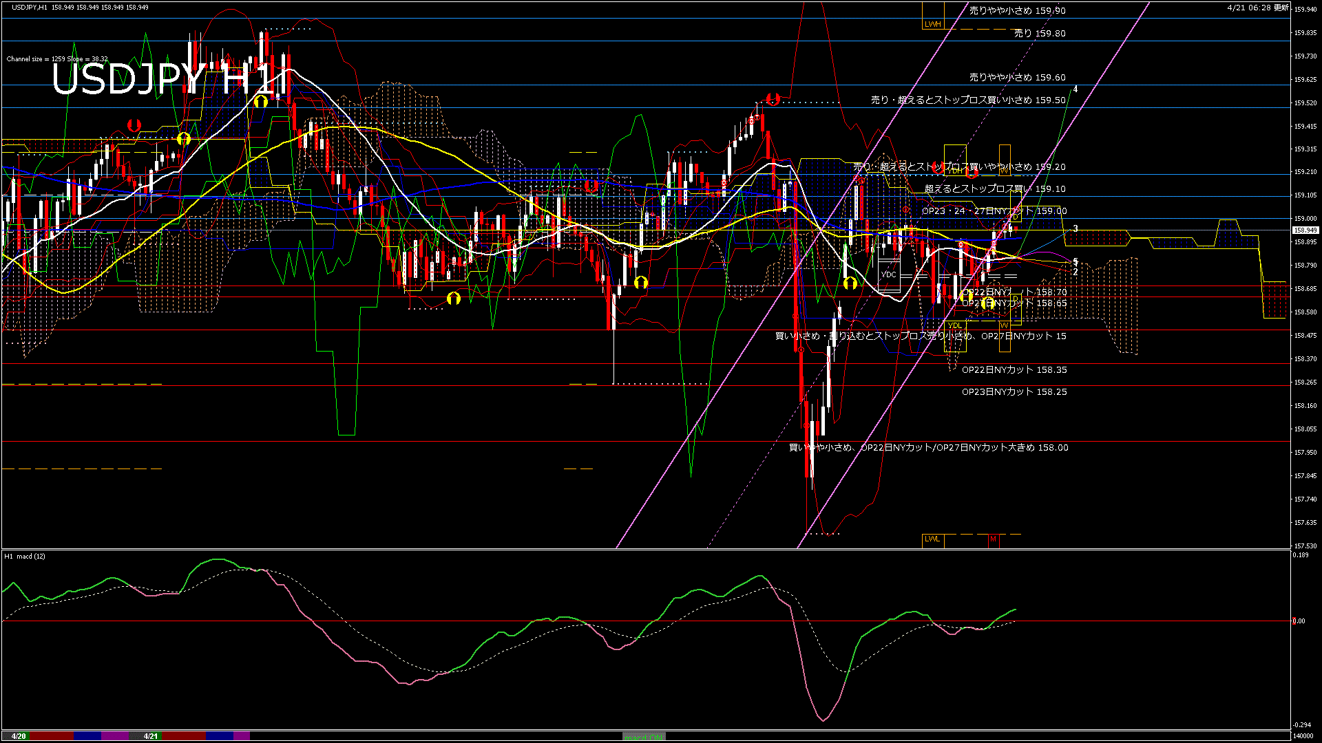 USDJPY-H1移動平均線と現在値(RSI)-2026.4.21 14:00:00
