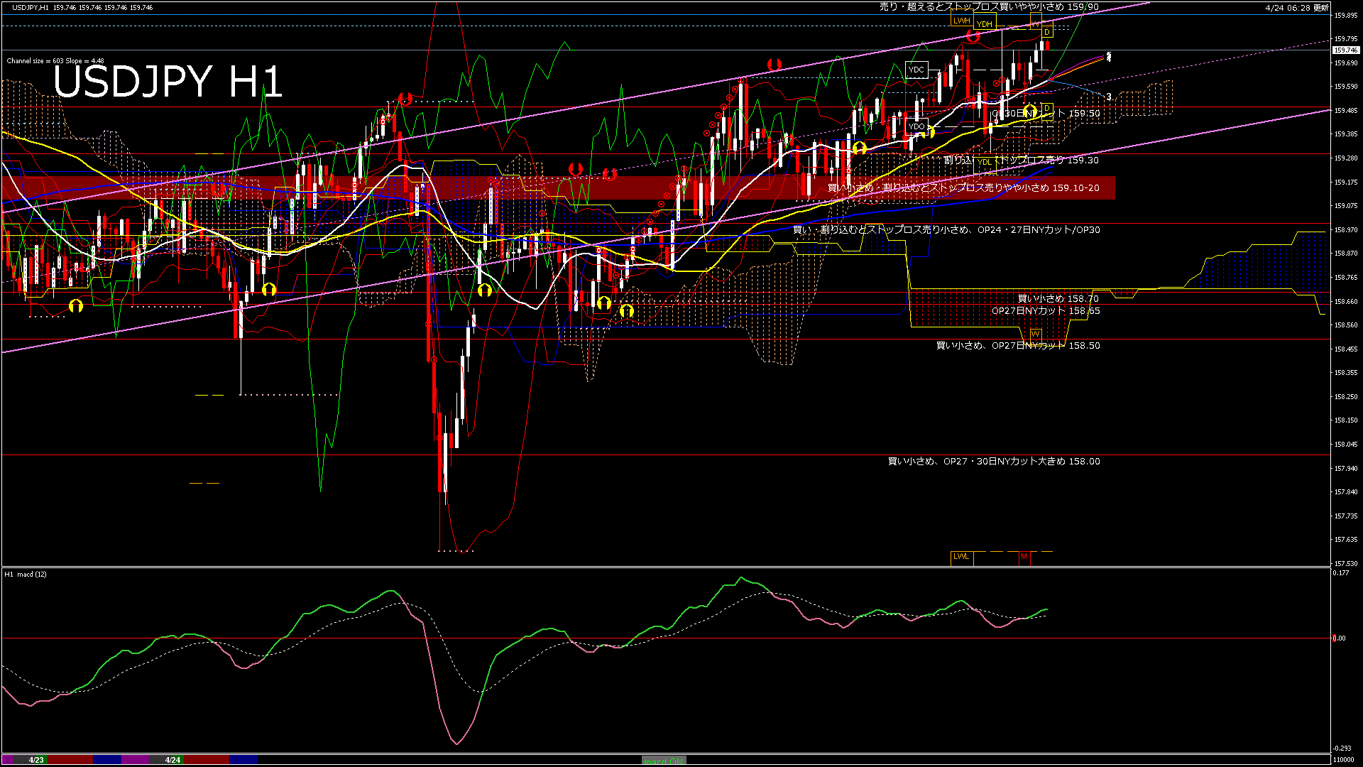 USDJPY-H1移動平均線と現在値(RSI)-2026.4.24 11:00:00