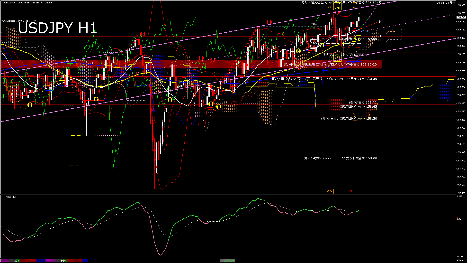 USDJPY-H1移動平均線と現在値(RSI)-2026.4.24 8:00:00